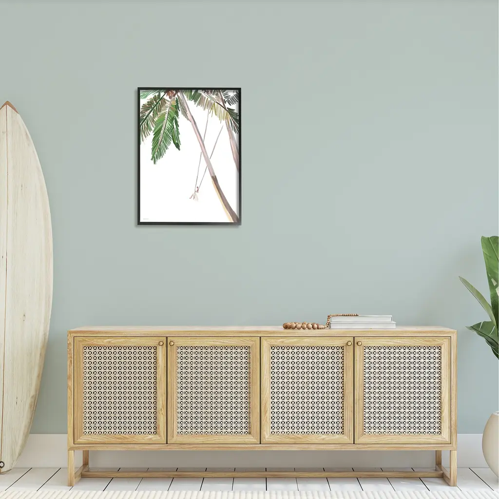 Stupell Girl Swinging Tropical Palm Trees Casual Design Framed Wall Art, Design By Amelia Noyes - 24 X 30 - Black