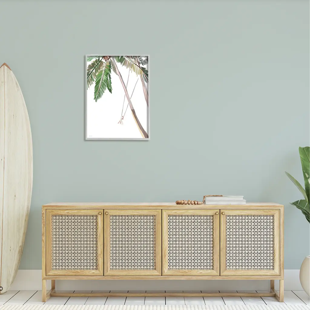 Stupell Girl Swinging Tropical Palm Trees Casual Design Framed Wall Art, Design By Amelia Noyes - 24 X 30 - Grey