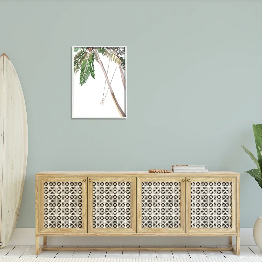 Stupell Girl Swinging Tropical Palm Trees Casual Design Framed Wall Art, Design By Amelia Noyes - 24 X 30 - White