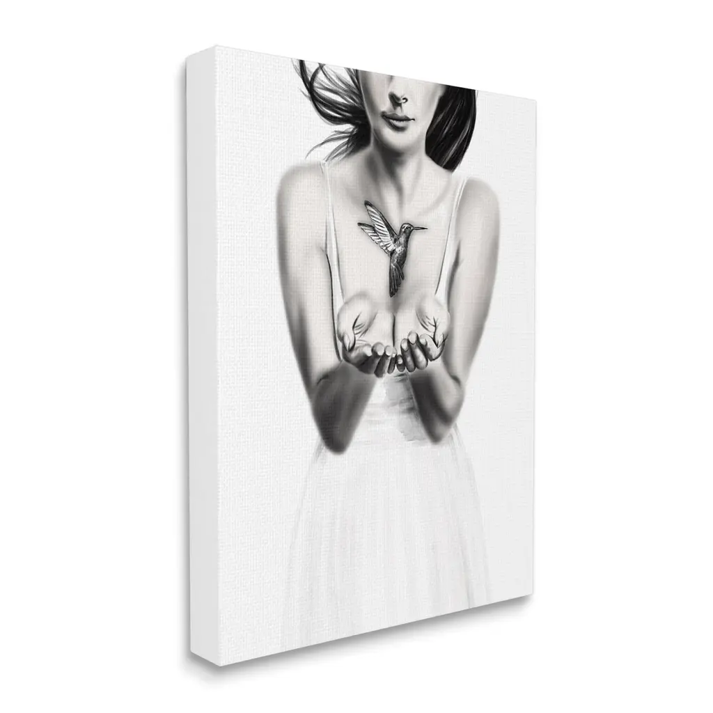 We create our stretched canvas to the highest standards. Using only the highest quality inks and canvas on Mimaki printers, we hand-cut and stretch each piece over a 1.5-inch thick wooden frame for hanging. As a result, the art comes ready to hang on the sturdy ledge with no installation required. Stupell Wall Art is made in the USA.Features: Dimensions: 16 x 1.5 x 20 InchesStretched Canvas Sizes Include Standard: 16 x 1.5 x 20 Large: 20 x 1.5 x 30 X-Large: 30 x 1.5 x 40 Oversized: 36 x 1.5 x 48Wall Art is Ready to Hang with Hardware Free Hanging. No installation required. For Easy Set Up Lean or Layer Artwork on Shelf or Against Wall.Our stretched canvas is created with the highest standards. We use only the highest quality inks and canvas on our in house Mimaki printers, and then hand cut and stretch each piece over a 1.5 inch thick wooden frame for hanging. Made In USA.Artwork Relates To: Female, Person, Woman, Hummingbird, Bird, Animal, PortraitDesign by Ros Ruseva