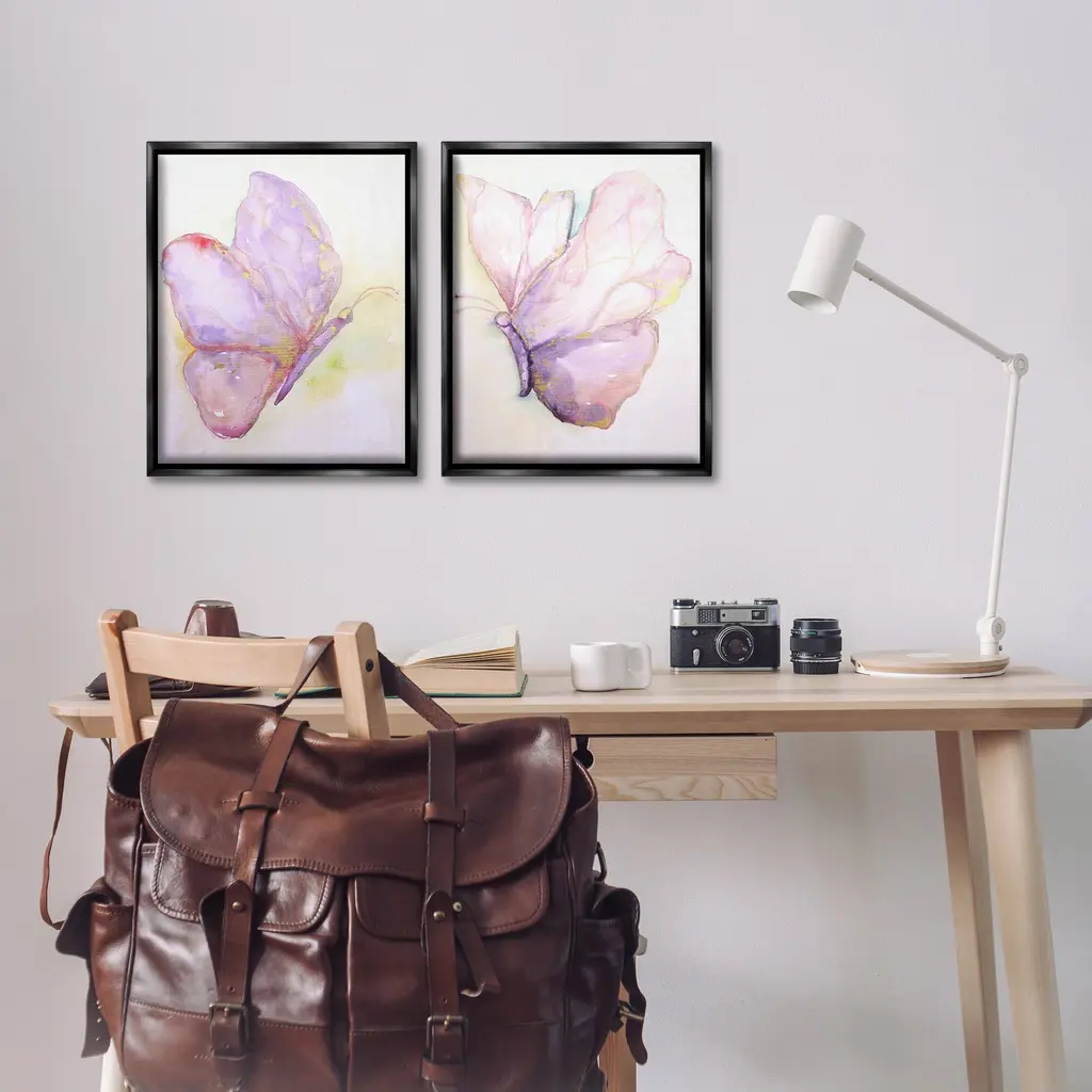 Elevate your home or office to the next level with Stupell Framed Floating Canvas Wall Art. Our premium hand-stretched canvas is mounted securely into a sturdy lightweight frame. The museum-style gap between the wrapped canvas and the box frame gives the illusion of floating artwork. Stupell Wall Art is made in the USA.Features: Dimensions: 2 Piece Set, Each Frame is 17 x 1.7 x 21Two Piece Floater Framed Canvas are available as 17x21 or 25x31 Panels. All Floater Frame Products have a 1.7" Depth.Wall Art is Ready to Hang with Hardware Free Hanging. No Installation required. For Easy Set Up Lean or Layer Artwork on Shelf or Against Wall. Artwork is Permently Fixed into the Frame.Our elevated 1.7" Thick Floating Frame is the perfect complement to our canvas style Wall Art. We use only the highest quality inks in house with industry leading printing solutions. Canvas is hand stretched over a durable wood foundation and then mounted securly into a Modern Box Frame. Made in the USA.Artwork Relates To: Abstract, Animal, Insect, Bug, Butterfly, WatercolorDesign by Leticia Herrera