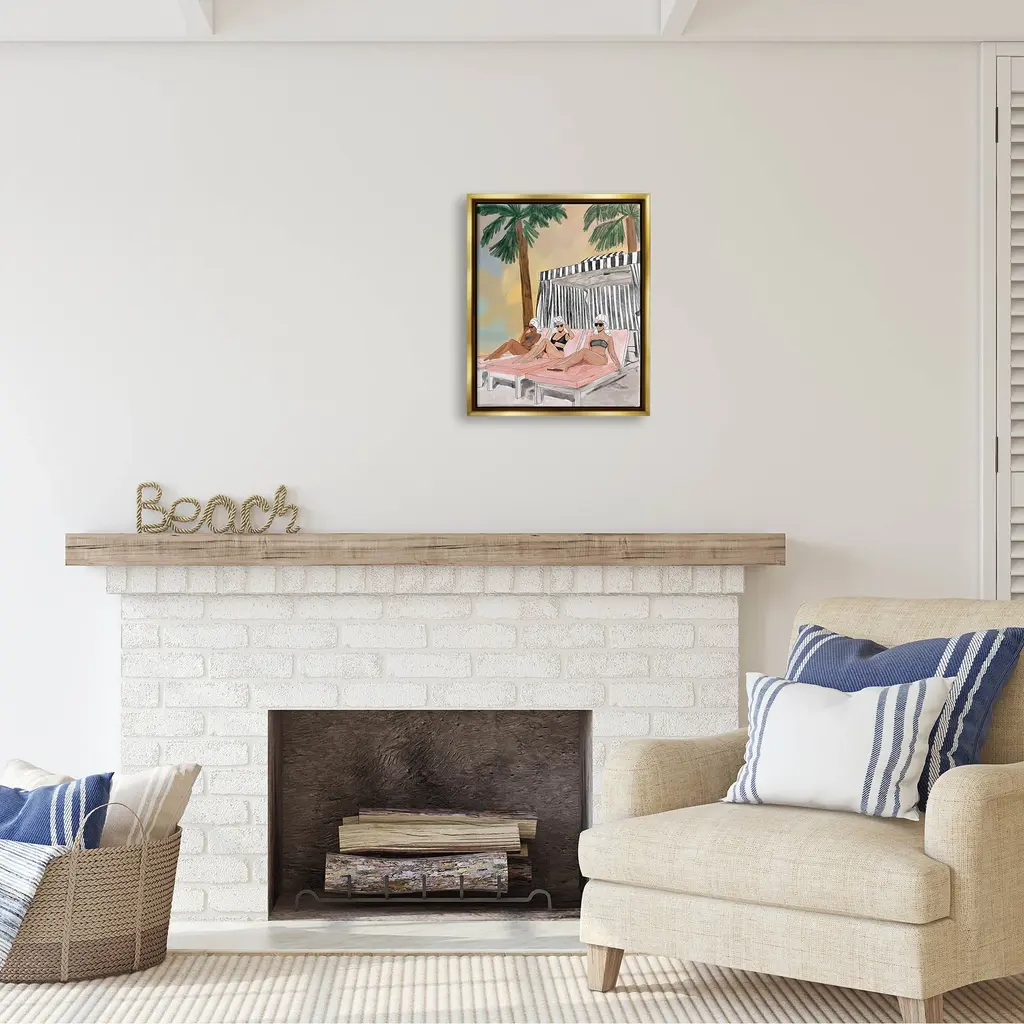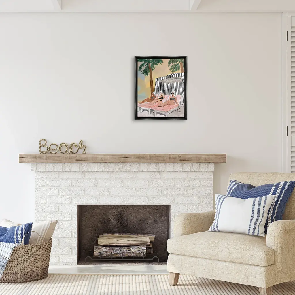 Elevate your home or office to the next level with Stupell Framed Floating Canvas Wall Art. Our premium hand-stretched canvas is mounted securely into a sturdy lightweight frame. The museum-style gap between the wrapped canvas and the box frame gives the illusion of floating artwork. Stupell Wall Art is made in the USA.Features: Dimensions: 17 x 1.7 x 21 Frame, 16 x 1.5 x 20 Canvas ArtFloating Frame Sizes Include Standard: 17 x 1.7 x 21 Oversized: 25 x 1.7 x 31Wall Art is Ready to Hang - No Installation or Hardware Needed. For Easy Set Up Lean or Layer Artwork on Shelf or Against Wall.Our elevated 1.7" Thick Floating Frame is the perfect complement to our canvas style Wall Art. We use only the highest quality inks in house with industry leading printing solutions. Canvas is hand stretched over a durable wood foundation and then mounted securly into a Modern Box Frame. Made in the USA.Artwork Relates To: Female, Person, Woman, Coastal, Summer, Beach, Shore, Tropical, Palm TreeDesign by Amelia Noyes
