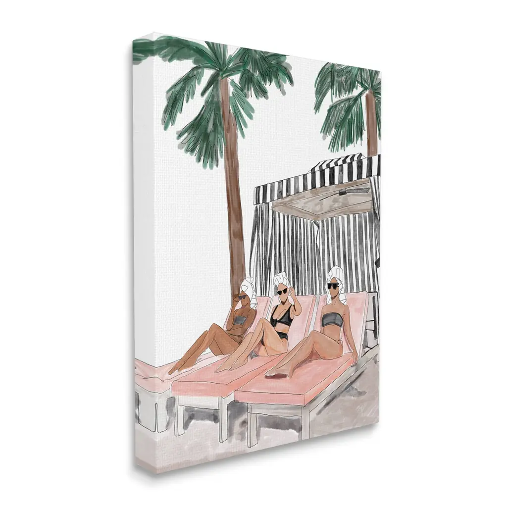 Stupell Girls Lounging Tropical Vacation Canvas Wall Art By Amelia Noyes - 16 X 20