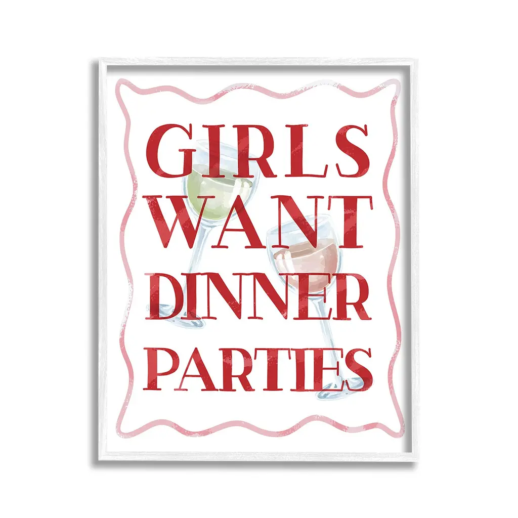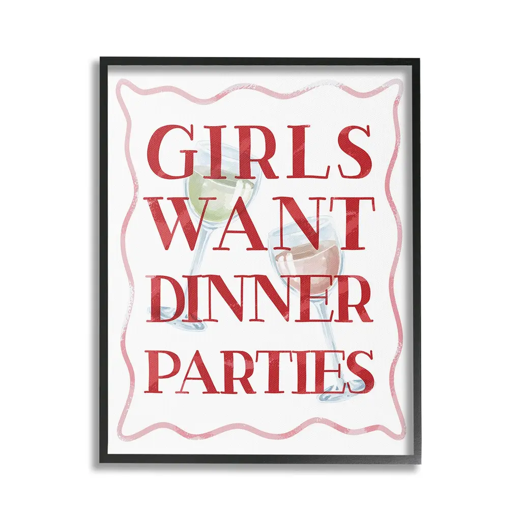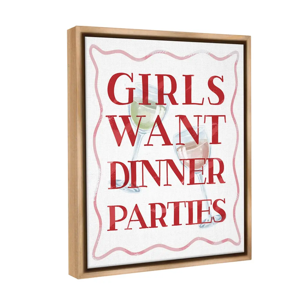 Stupell Girls Want Dinner Parties Framed Floater Canvas Wall Art Design By Lil' Rue - 17 X 21 - Brown
