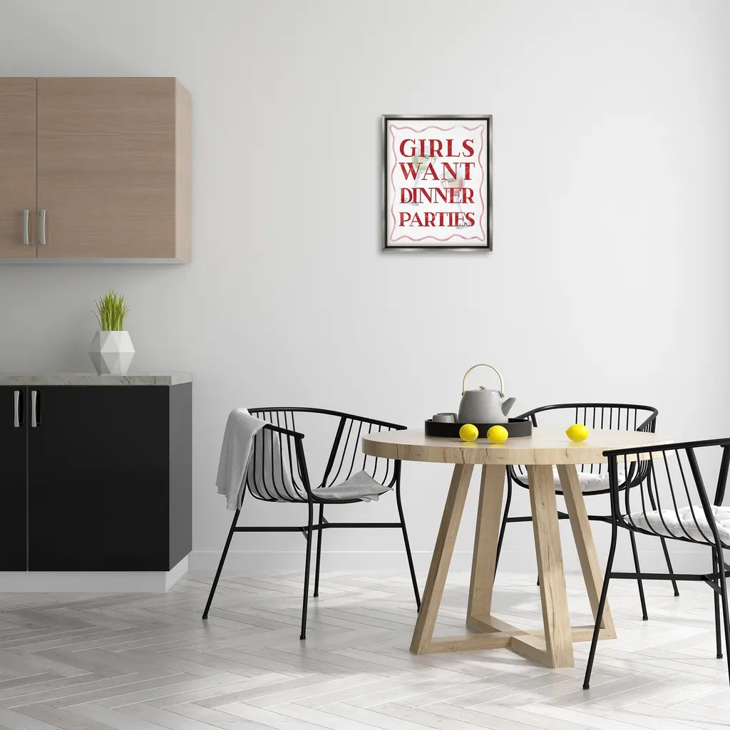Stupell Girls Want Dinner Parties Framed Floater Canvas Wall Art Design By Lil' Rue - 17 X 21 - Grey