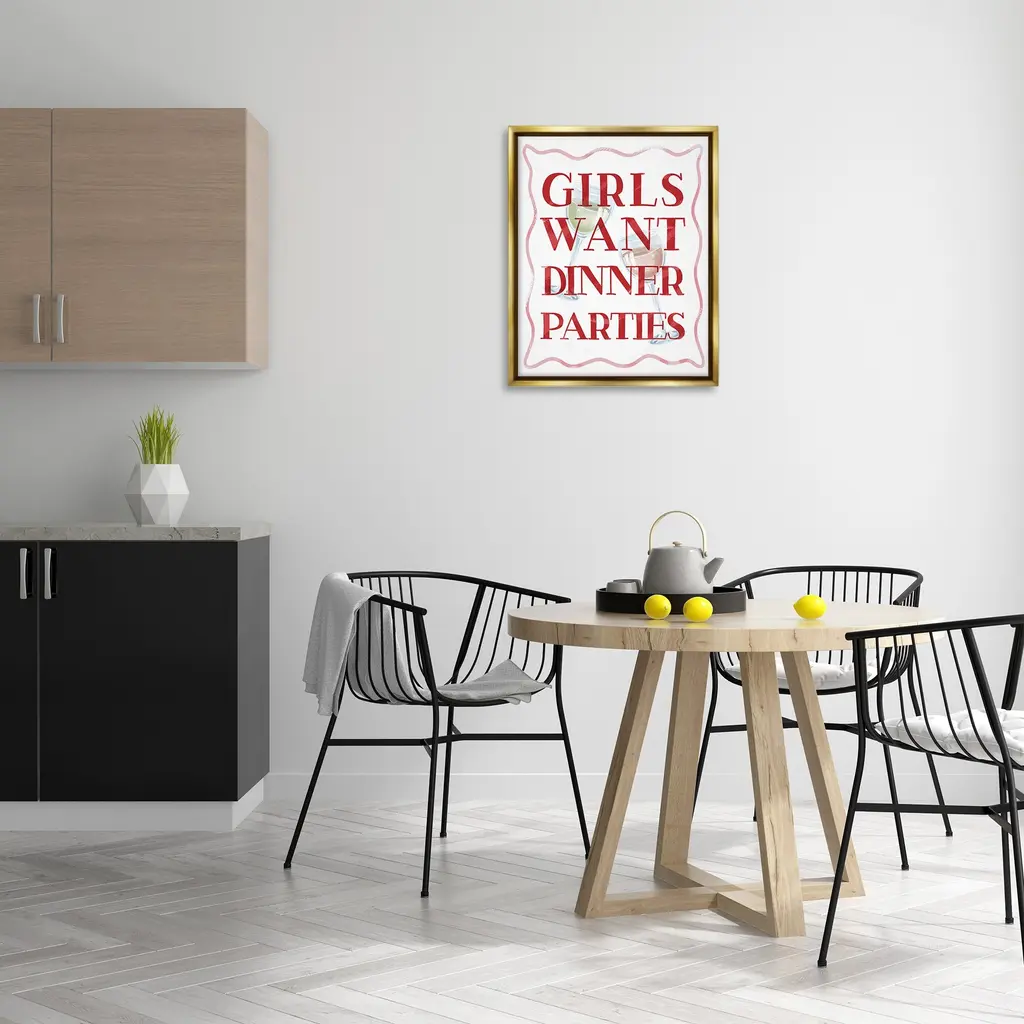 Stupell Girls Want Dinner Parties Framed Floater Canvas Wall Art Design By Lil' Rue - 25 X 31 - Gold