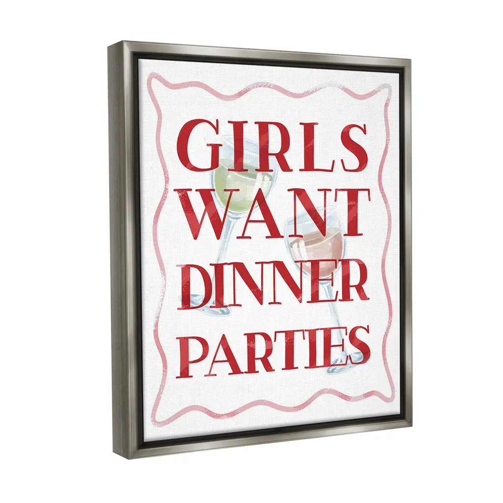 Stupell Girls Want Dinner Parties Framed Floater Canvas Wall Art Design By Lil' Rue - 25 X 31 - Grey