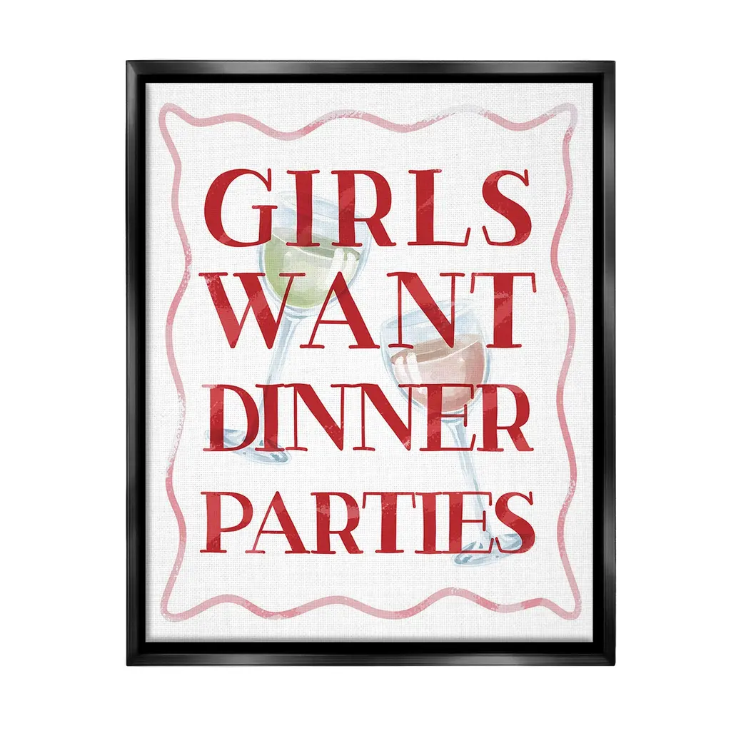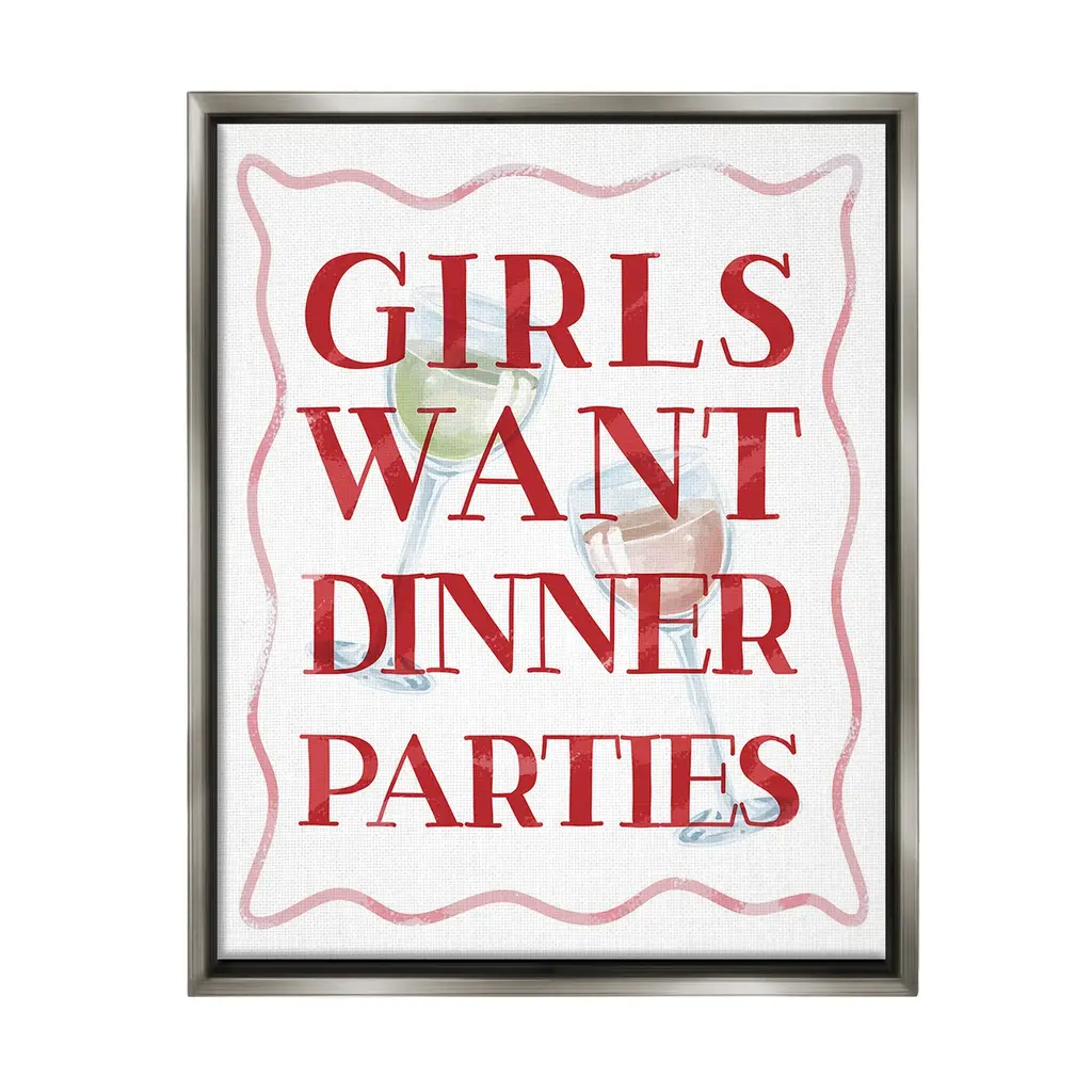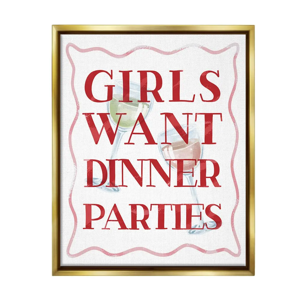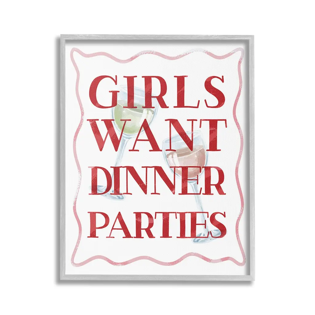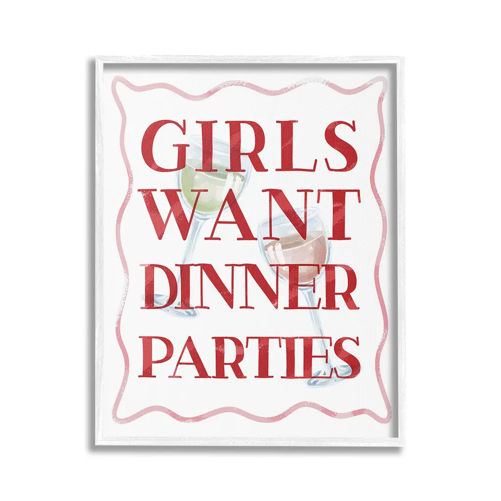 Add dimension to any room with our textured Framed Giclee Artwork. Our framed artwork is securely mounted into a 1.5-inch thick wood grain frame and ready to hang. Frames are available in three alluring styles: black, gray farmhouse and white. In addition, you should check out our oversized options if you want a statement piece. Stupell Wall Art is made in the USA.Features: Dimensions: 11 x 1.5 x 14 FramedFramed Giclee Products are available in the sizes 11"x14", 16"x20" or 24"x30". All Framed Giclee Products have a 1.5" Depth. Wall Art is Ready to Hang with Hardware Free Hanging. No installation required. For Easy Set Up Lean or Layer Artwork on Shelf or Against Wall.Our giclée prints are carefully mounted on a durable MDF backing, and then perfectly finished in a 1.5 inch thick woodgrain frame. Mounted frame colors include black, gray farmhouse and white. Made In USA.Artwork Relates To: Alcohol, Beverage, Liquor, Wine, Glass, Wine Glass, Cocktail, Girls Want Dinner PartiesDesign by Lil' Rue