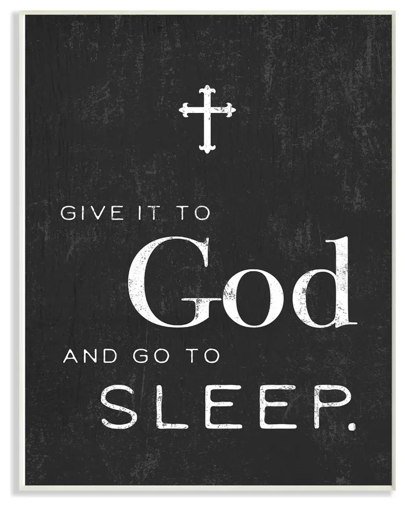 Stupell Give It To God And Go To Sleep Black And White Wood Look Sign Framed Giclee Texturized Art By Marla Rae - 11 X 14 - White