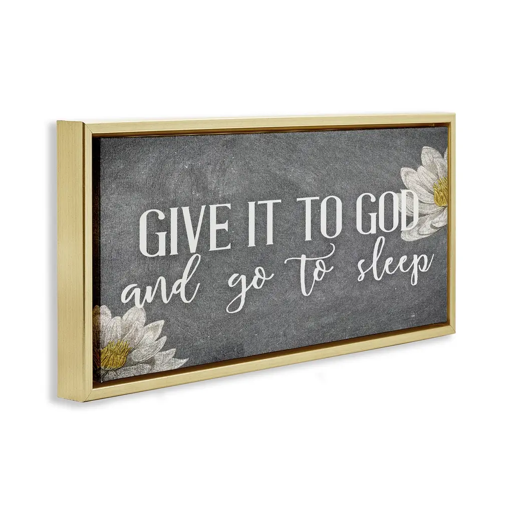 Stupell Give It To God Grey Phrase Framed Floater Canvas Wall Art Design By Kim Allen - 25 X 11 - Gold