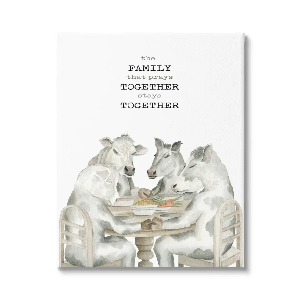 We create our stretched canvas to the highest standards. Using only the highest quality inks and canvas on Mimaki printers, we hand-cut and stretch each piece over a 1.5-inch thick wooden frame for hanging. As a result, the art comes ready to hang on the sturdy ledge with no installation required. Stupell Wall Art is made in the USA.Features: Dimensions: 24 x 1.5 x 10 InchesStretched Canvas Sizes Include Standard: 24 x 1.5 x 10 Large: 30 x 1.5 x 13 X-Large: 40 x 1.5 x 17 Oversized: 48 x 1.5 x 20Wall Art is Ready to Hang with Hardware Free Hanging. No installation required. For Easy Set Up Lean or Layer Artwork on Shelf or Against Wall.Our stretched canvas is created with the highest standards. We use only the highest quality inks and canvas on our in house Mimaki printers, and then hand cut and stretch each piece over a 1.5 inch thick wooden frame for hanging. Made In USA.Artwork Relates To: Cup, Kitchen, Table, Animal, Cattle, Mammal, Cow, Farm Animal, Horse, Pig, Sheep, Dog, Coffee, Coffee Cup, Give ThanksDesign by Cindy Jacobs