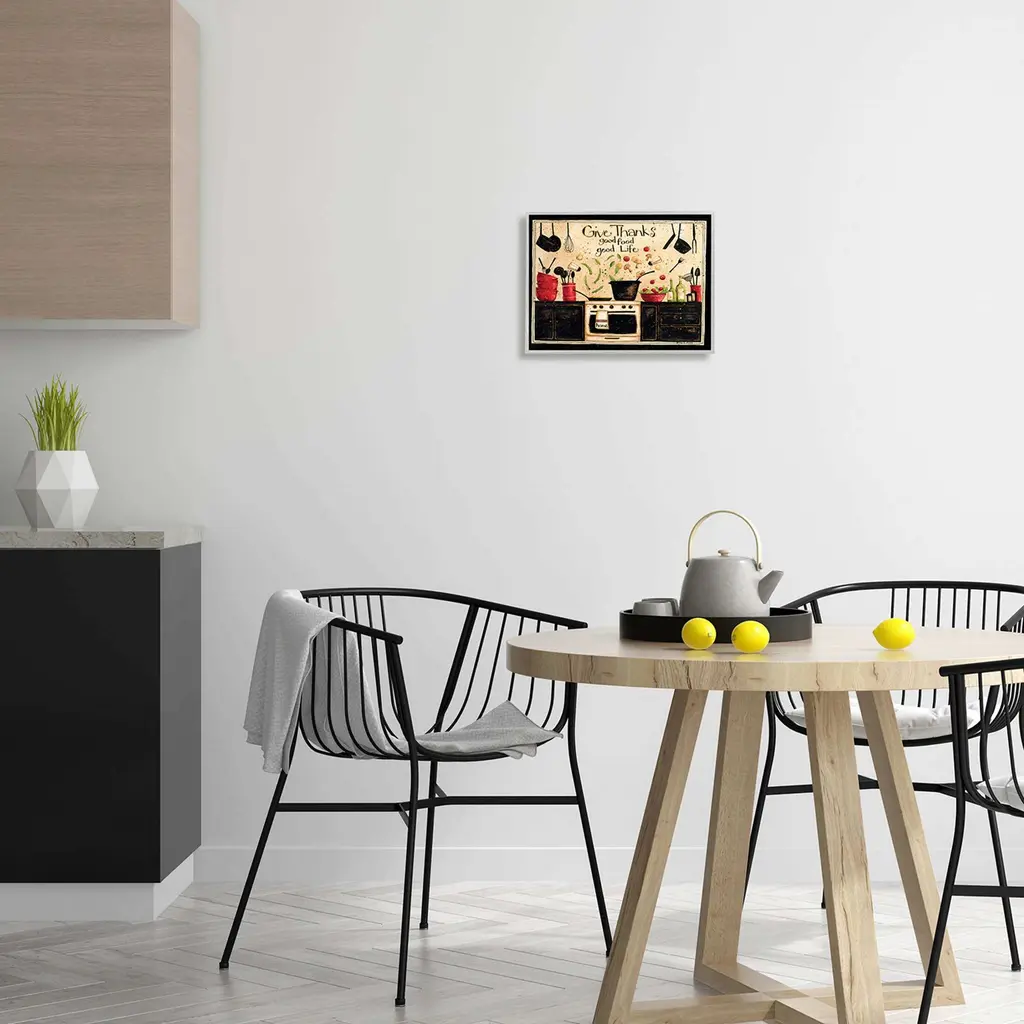 Our Framed Giclee Wall Art adds a touch of class to any space in your home or office. Frames are available in three alluring styles: black, gray farmhouse and white. Our textured artwork will add more depth and dimension to any space. Each piece is mounted with a 1.5 inch thick wood grain frame that is ready to hang! Looking for a statement piece? We have oversized artwork available.Features: Dimensions: 14 x 1.5 x 11 FramedFramed Giclee Sizes Include Standard: 14 x 1.5 x 11 Large: 20 x 1.5 x 16 Oversized: 30 x 1.5 x 24Wall Art is Ready to Hang - No Installation or Hardware Needed. For Easy Set Up Lean or Layer Artwork on Shelf or Against Wall.Our giclée prints are carefully mounted on a durable MDF backing, and then perfectly finished in a 1.5 inch thick woodgrain frame. Mounted frame colors include black, gray farmhouse and white. Made In USA.Artwork Relates To: Cutlery, Spoon, People, Produce, Food, Meal, Kitchen, Dinner, Dining, Chef, Vintage, Checkered, PatternDesign by Dan DiPaoloFirst perfectly in any Kitchen, Dining Room, Bar or Pantry.Text Includes: Give Thanks. Good Food. Good Life