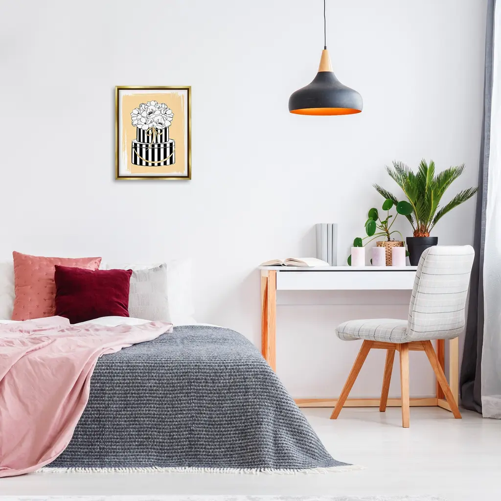 Elevate your home or office to the next level with Stupell Framed Floating Canvas Wall Art. Our premium hand-stretched canvas is mounted securely into a sturdy lightweight frame. The museum-style gap between the wrapped canvas and the box frame gives the illusion of floating artwork. Stupell Wall Art is made in the USA.Features: Dimensions: 17 x 1.7 x 21 Frame, 16 x 1.5 x 20 Canvas ArtFloating Frame Canvas Products are available in sizes 17"x21" and 25"x31". All Floating Frame Canvas Products have a 1.7" Depth.Wall Art is Ready to Hang with Hardware Free Hanging. No Installation required. For Easy Set Up Lean or Layer Artwork on Shelf or Against Wall. Artwork is Permently Fixed into the Frame.Our elevated 1.7" Thick Floating Frame is the perfect complement to our canvas style Wall Art. We use only the highest quality inks in house with industry leading printing solutions. Canvas is hand stretched over a durable wood foundation and then mounted securly into a Modern Box Frame. Made in the USA.Artwork Relates To: Glam, Fashion, Stripes, Pattern, Flower, Floral, BouquetDesign by Martina Pavlova