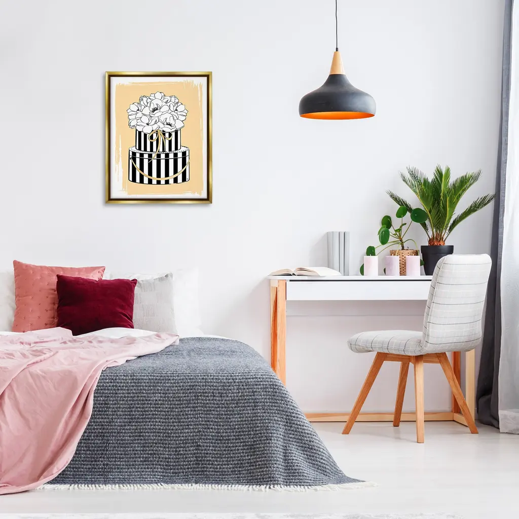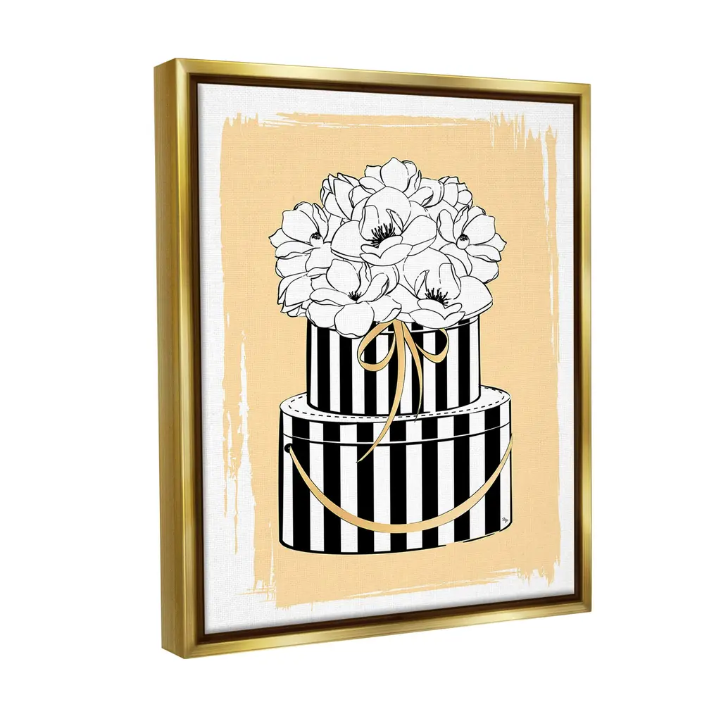 Elevate your home or office to the next level with Stupell Framed Floating Canvas Wall Art. Our premium hand-stretched canvas is mounted securely into a sturdy lightweight frame. The museum-style gap between the wrapped canvas and the box frame gives the illusion of floating artwork. Stupell Wall Art is made in the USA.Features: Dimensions: 17 x 1.7 x 21 Frame, 16 x 1.5 x 20 Canvas ArtFloating Frame Canvas Products are available in sizes 17"x21" and 25"x31". All Floating Frame Canvas Products have a 1.7" Depth.Wall Art is Ready to Hang with Hardware Free Hanging. No Installation required. For Easy Set Up Lean or Layer Artwork on Shelf or Against Wall. Artwork is Permently Fixed into the Frame.Our elevated 1.7" Thick Floating Frame is the perfect complement to our canvas style Wall Art. We use only the highest quality inks in house with industry leading printing solutions. Canvas is hand stretched over a durable wood foundation and then mounted securly into a Modern Box Frame. Made in the USA.Artwork Relates To: Glam, Fashion, Stripes, Pattern, Flower, Floral, BouquetDesign by Martina Pavlova
