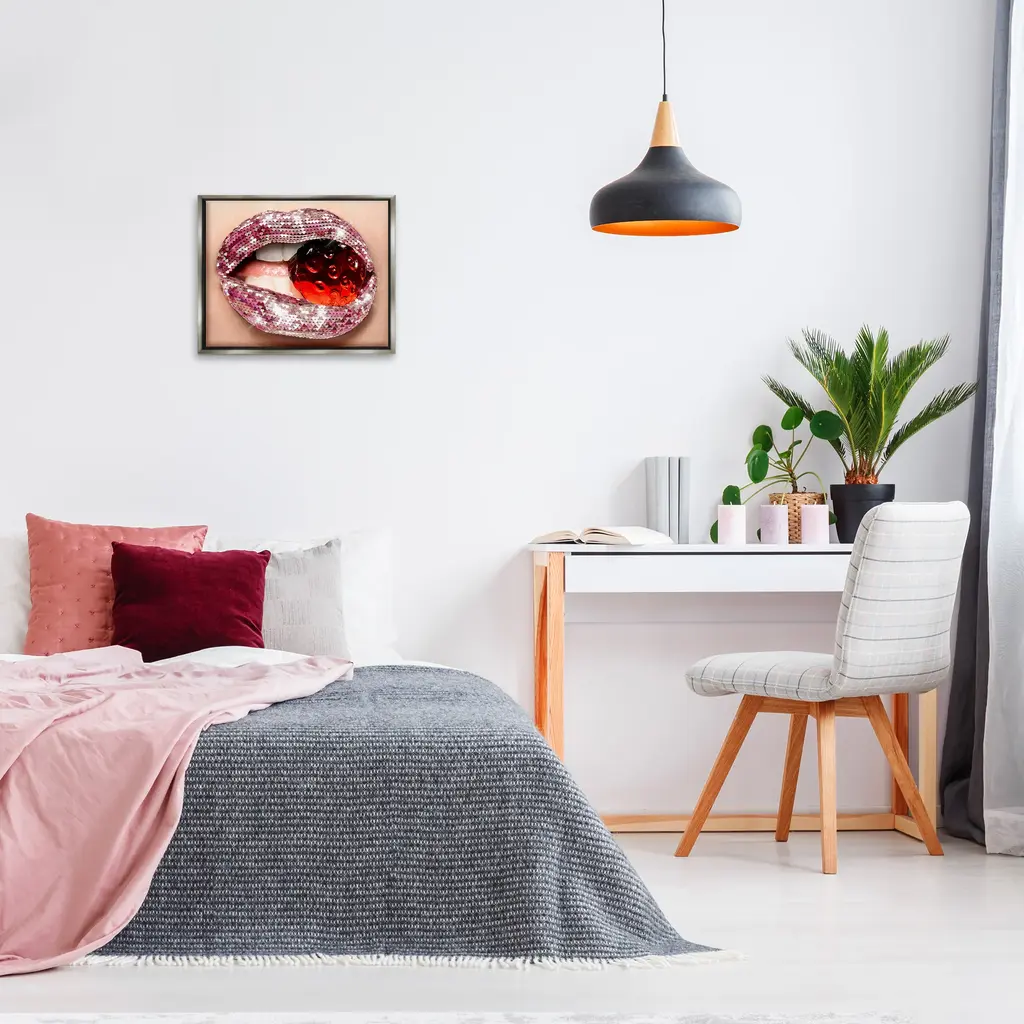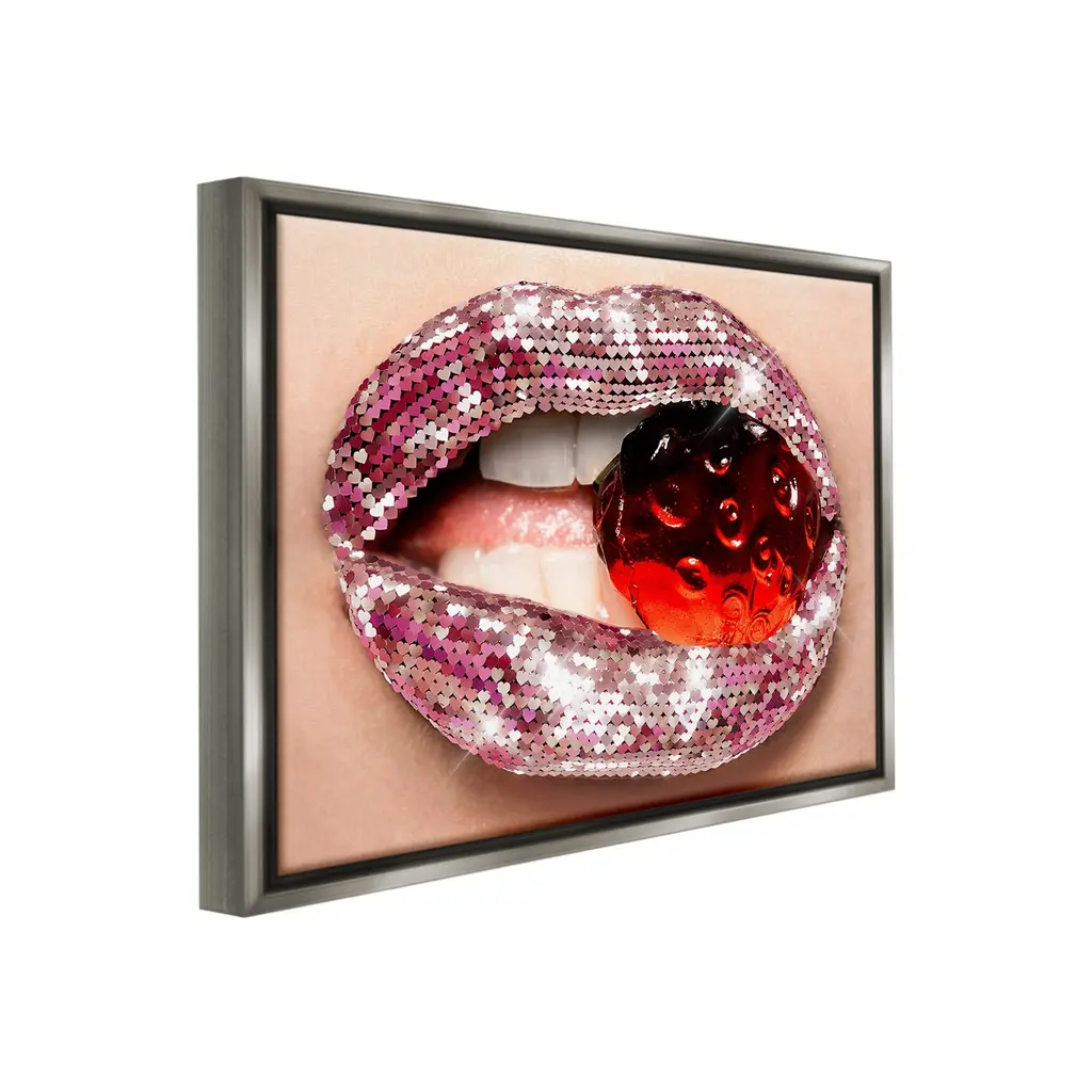 Stupell Glam Biting Candy Framed Floater Canvas Wall Art Design By Ziwei Li - 21 X 17 - Grey