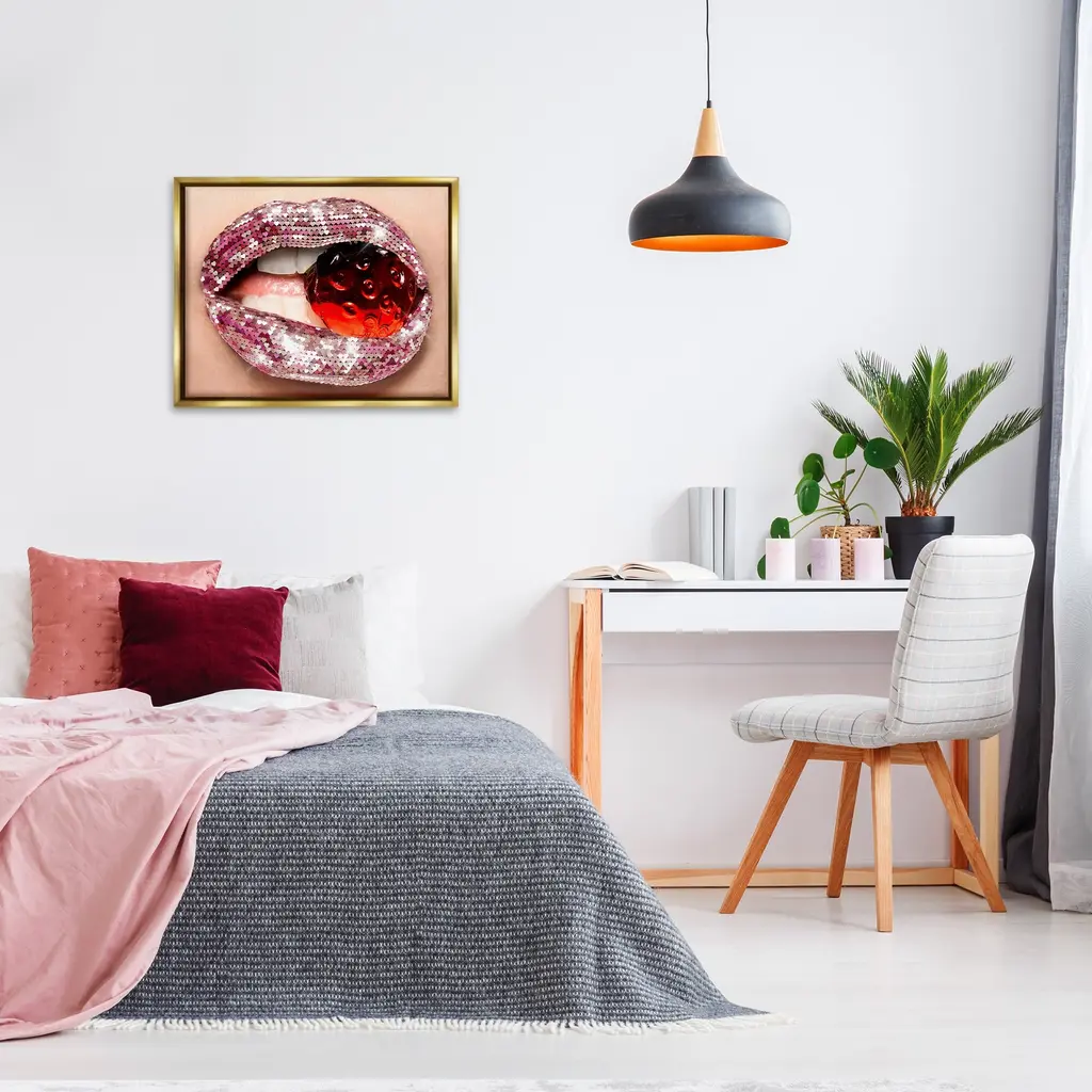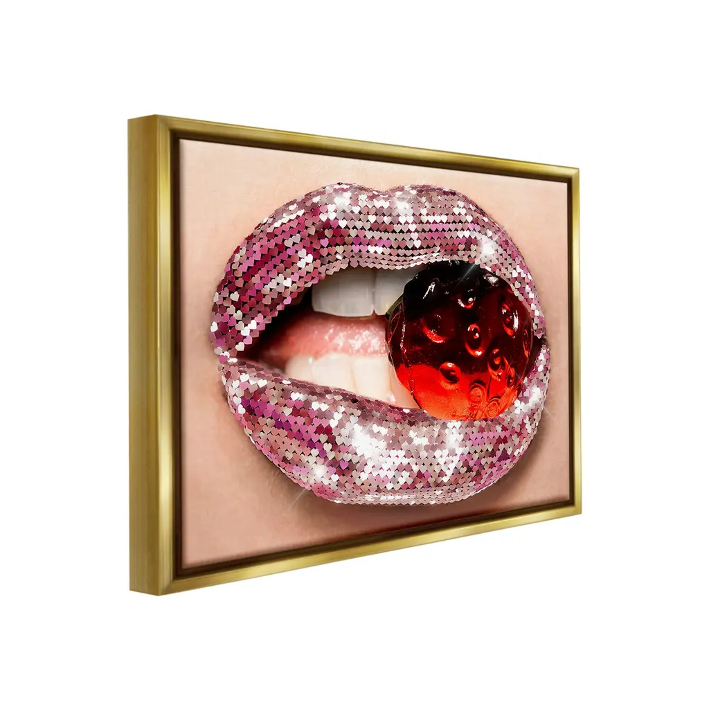 Stupell Glam Biting Candy Framed Floater Canvas Wall Art Design By Ziwei Li - 31 X 25 - Gold