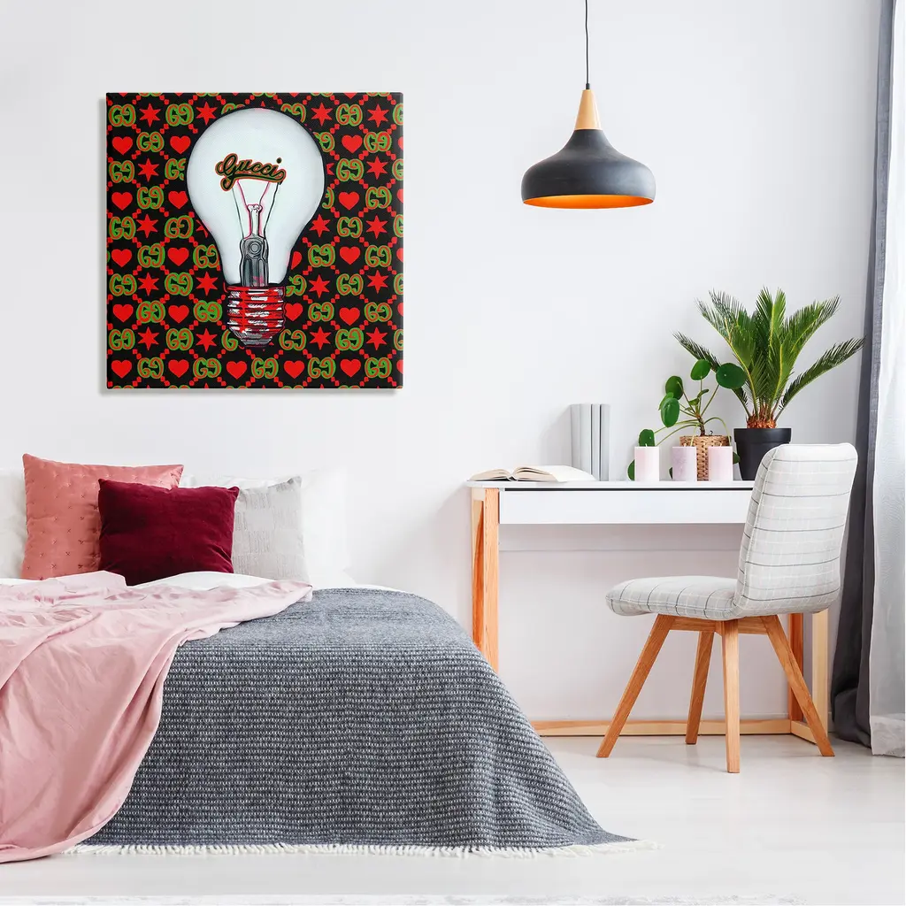 We create our stretched canvas to the highest standards. Using only the highest quality inks and canvas on Mimaki printers, we hand-cut and stretch each piece over a 1.5-inch thick wooden frame for hanging. As a result, the art comes ready to hang on the sturdy ledge with no installation required. Stupell Wall Art is made in the USA.Features: Dimensions: 17 x 1.5 x 17 InchesStretched Canvas Sizes Include Standard: 17 x 1.5 x 17 Large: 24 x 1.5 x 24 X-Large: 30 x 1.5 x 30 Oversized: 36 x 1.5 x 36Wall Art is Ready to Hang with Hardware Free Hanging. No installation required. For Easy Set Up Lean or Layer Artwork on Shelf or Against Wall.Our stretched canvas is created with the highest standards. We use only the highest quality inks and canvas on our in house Mimaki printers, and then hand cut and stretch each piece over a 1.5 inch thick wooden frame for hanging. Made In USA.Artwork Relates To: Light, Lightbulb, Fashion, GlamDesign by Amelia Noyes