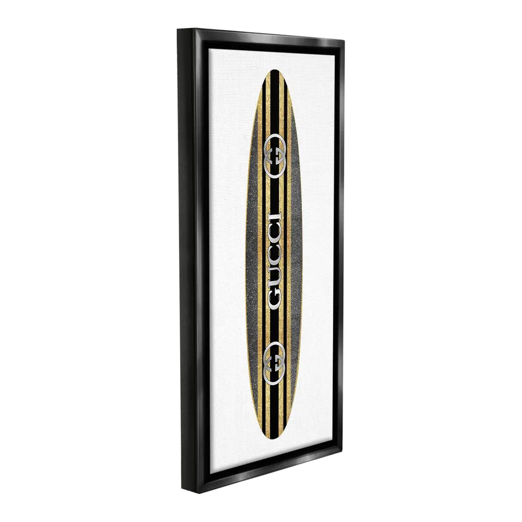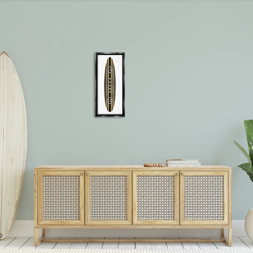 Stupell Glam Brand Surfboard Framed Floater Canvas Wall Art Design By Madeline Blake - 11 X 25 - Black