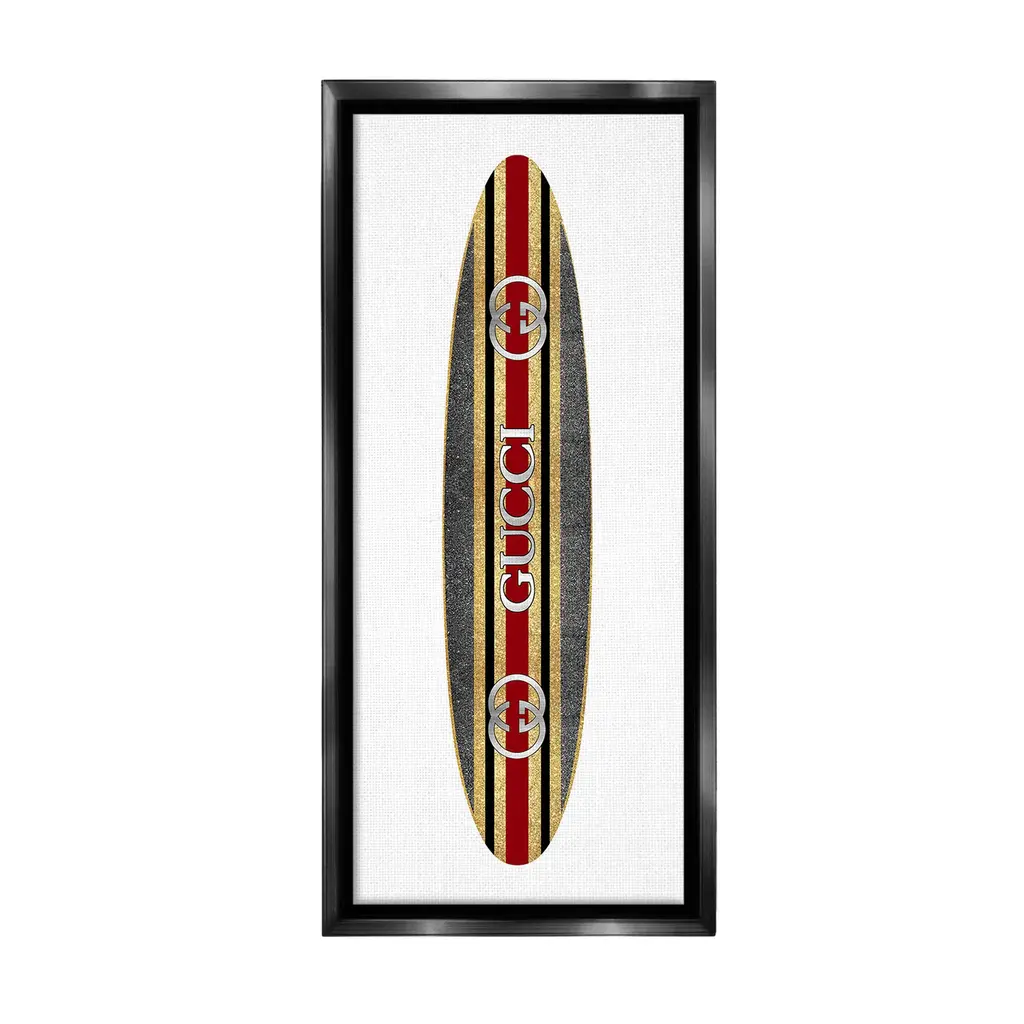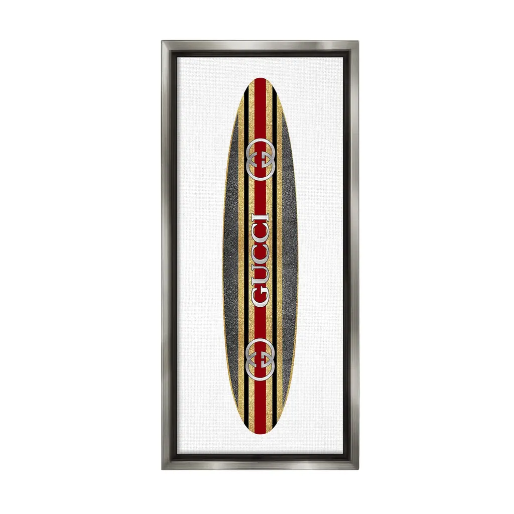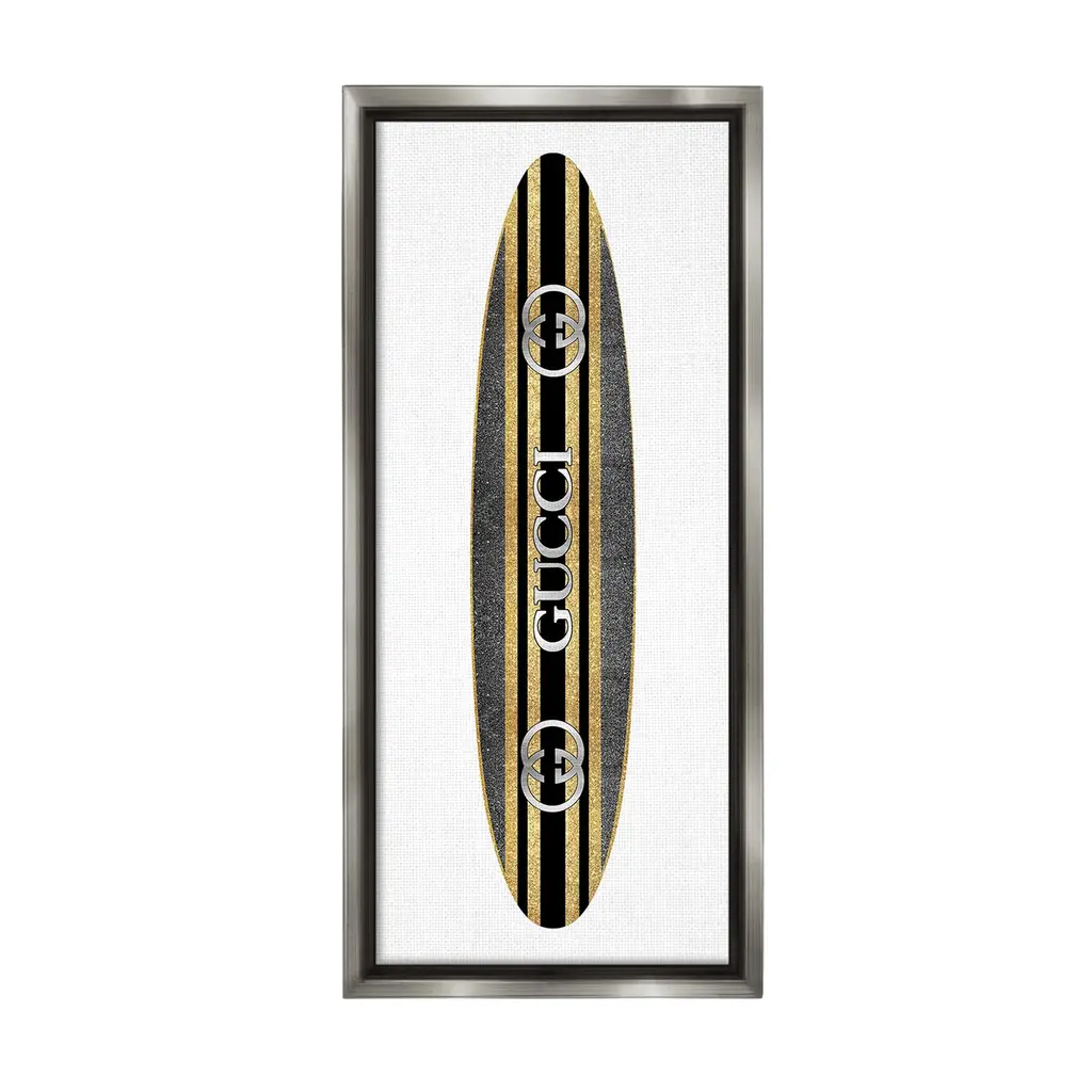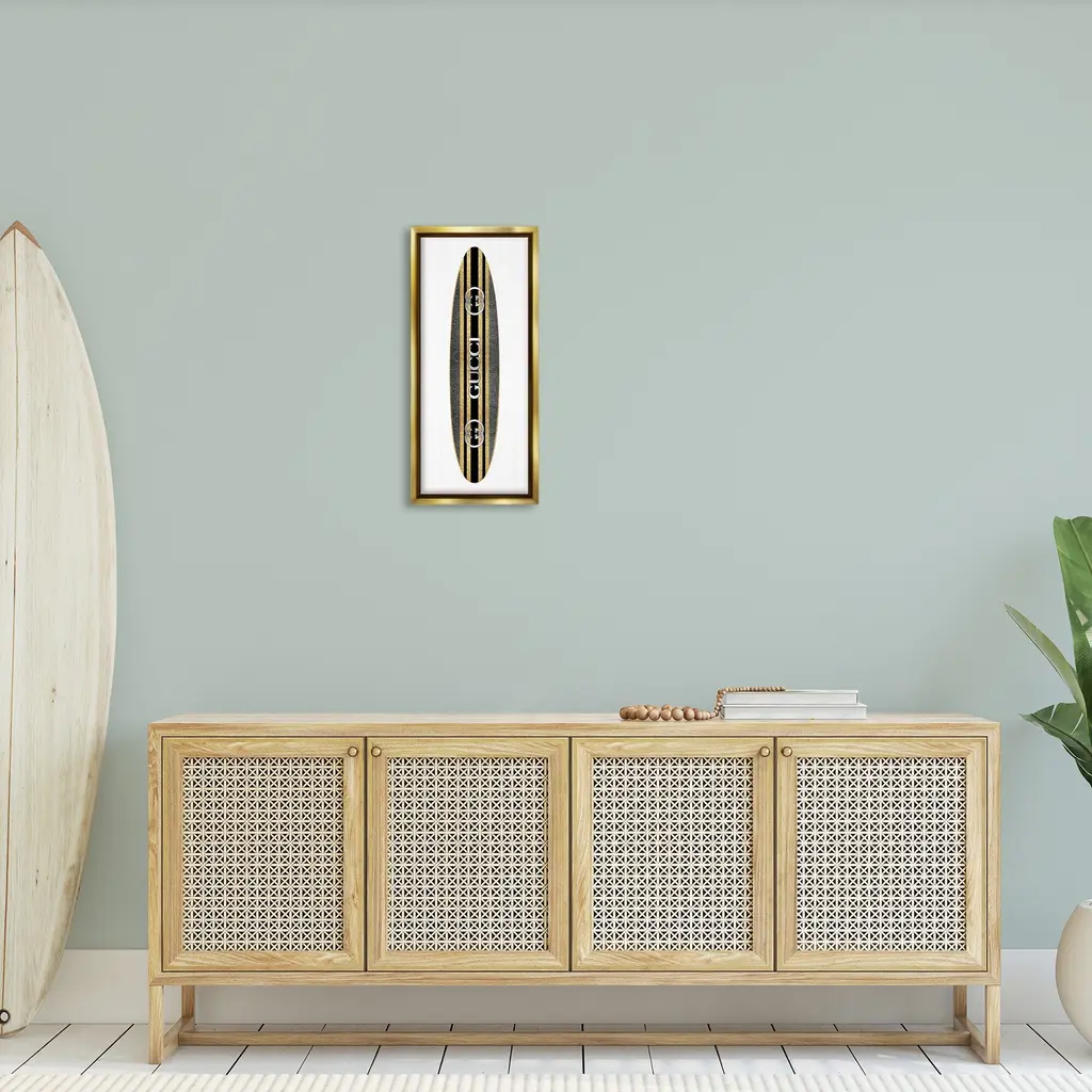 Stupell Glam Brand Surfboard Framed Floater Canvas Wall Art Design By Madeline Blake - 11 X 25 - Gold
