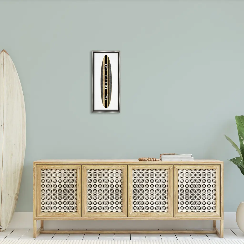 Stupell Glam Brand Surfboard Framed Floater Canvas Wall Art Design By Madeline Blake - 11 X 25 - Grey
