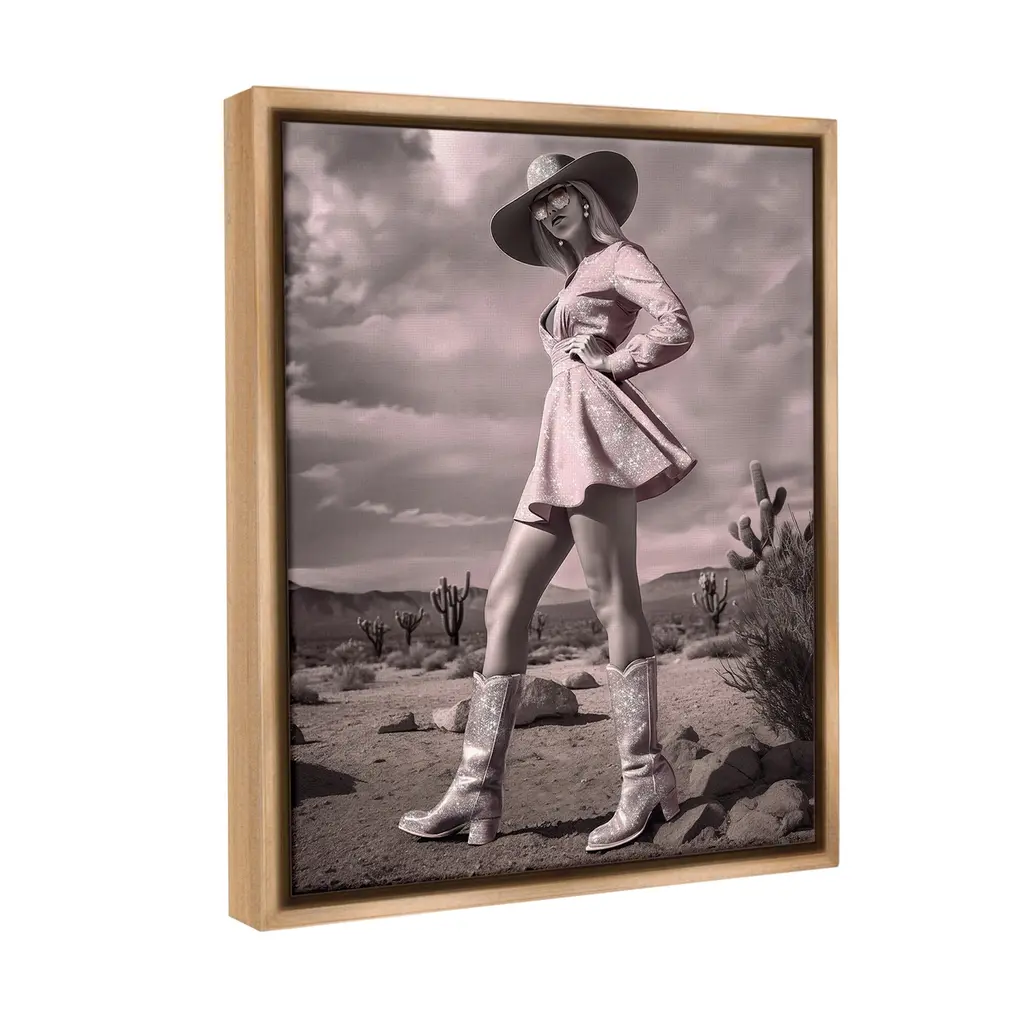 Elevate your home or office to the next level with Stupell Framed Floating Canvas Wall Art. Our premium hand-stretched canvas is mounted securely into a sturdy lightweight frame. The museum-style gap between the wrapped canvas and the box frame gives the illusion of floating artwork. Stupell Wall Art is made in the USA.Features: Dimensions: 17 x 1.7 x 21 Frame, 16 x 1.5 x 20 Canvas ArtFloating Frame Canvas Products are available in sizes 17"x21" and 25"x31". All Floating Frame Canvas Products have a 1.7" Depth.Wall Art is Ready to Hang with Hardware Free Hanging. No Installation required. For Easy Set Up Lean or Layer Artwork on Shelf or Against Wall. Artwork is Permently Fixed into the Frame.Our elevated 1.7" Thick Floating Frame is the perfect complement to our canvas style Wall Art. We use only the highest quality inks in house with industry leading printing solutions. Canvas is hand stretched over a durable wood foundation and then mounted securly into a Modern Box Frame. Made in the USA.Artwork Relates To: Dress, Person, Female, Girl, Fashion, Glam, Desert, Cowgirl, CactusDesign by Ziwei Li
