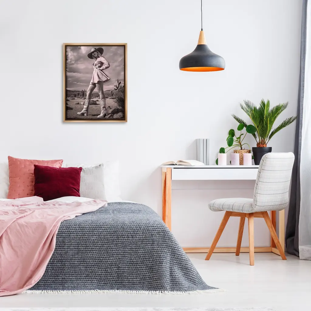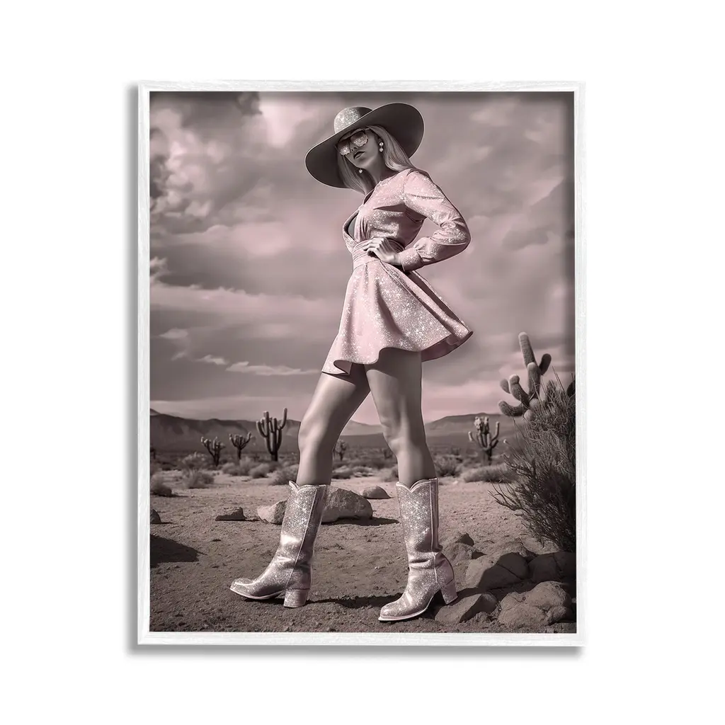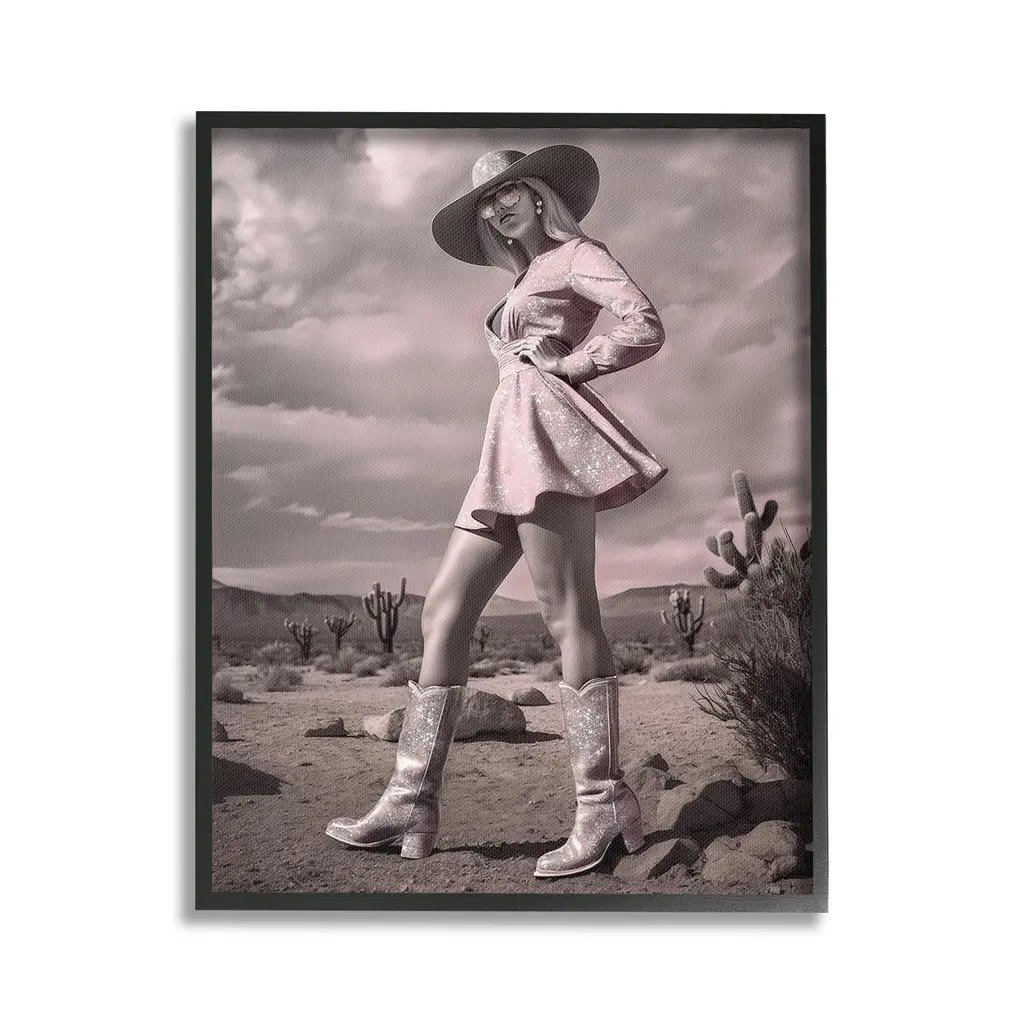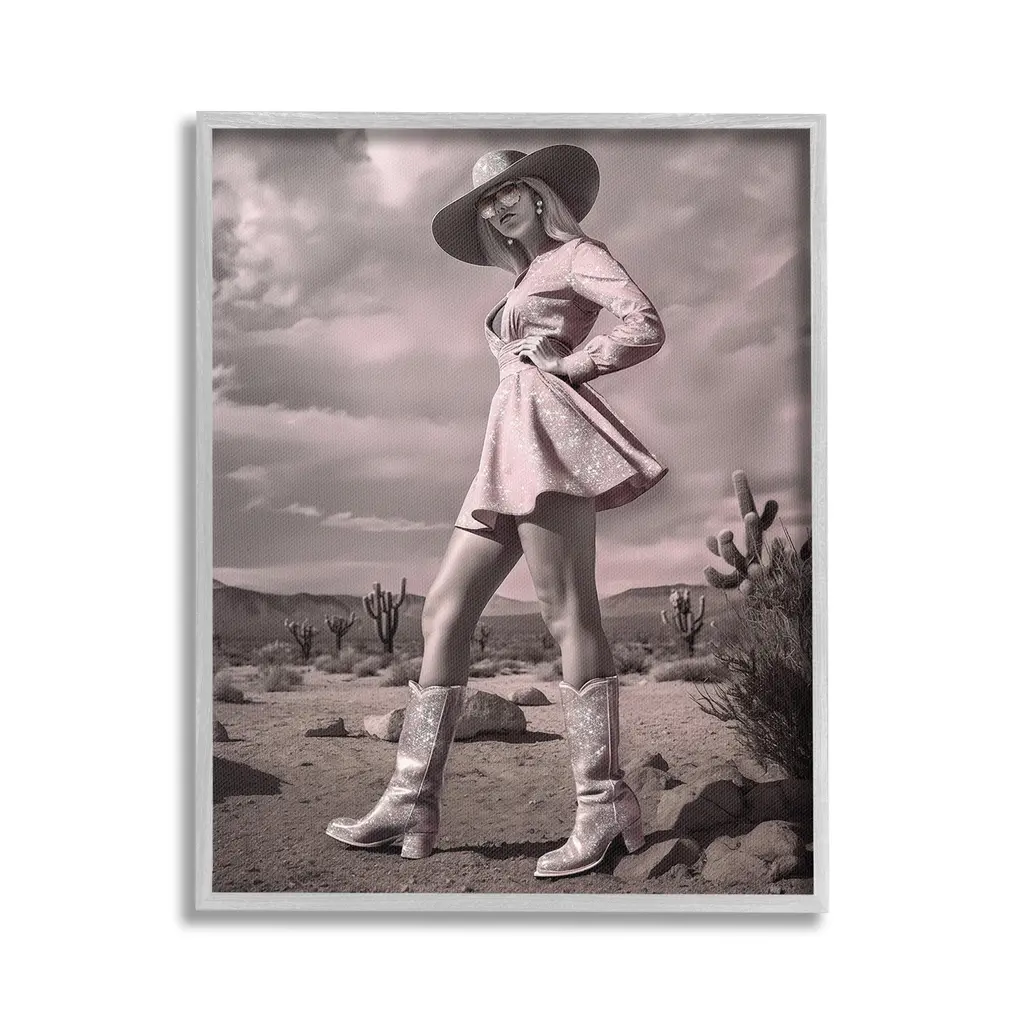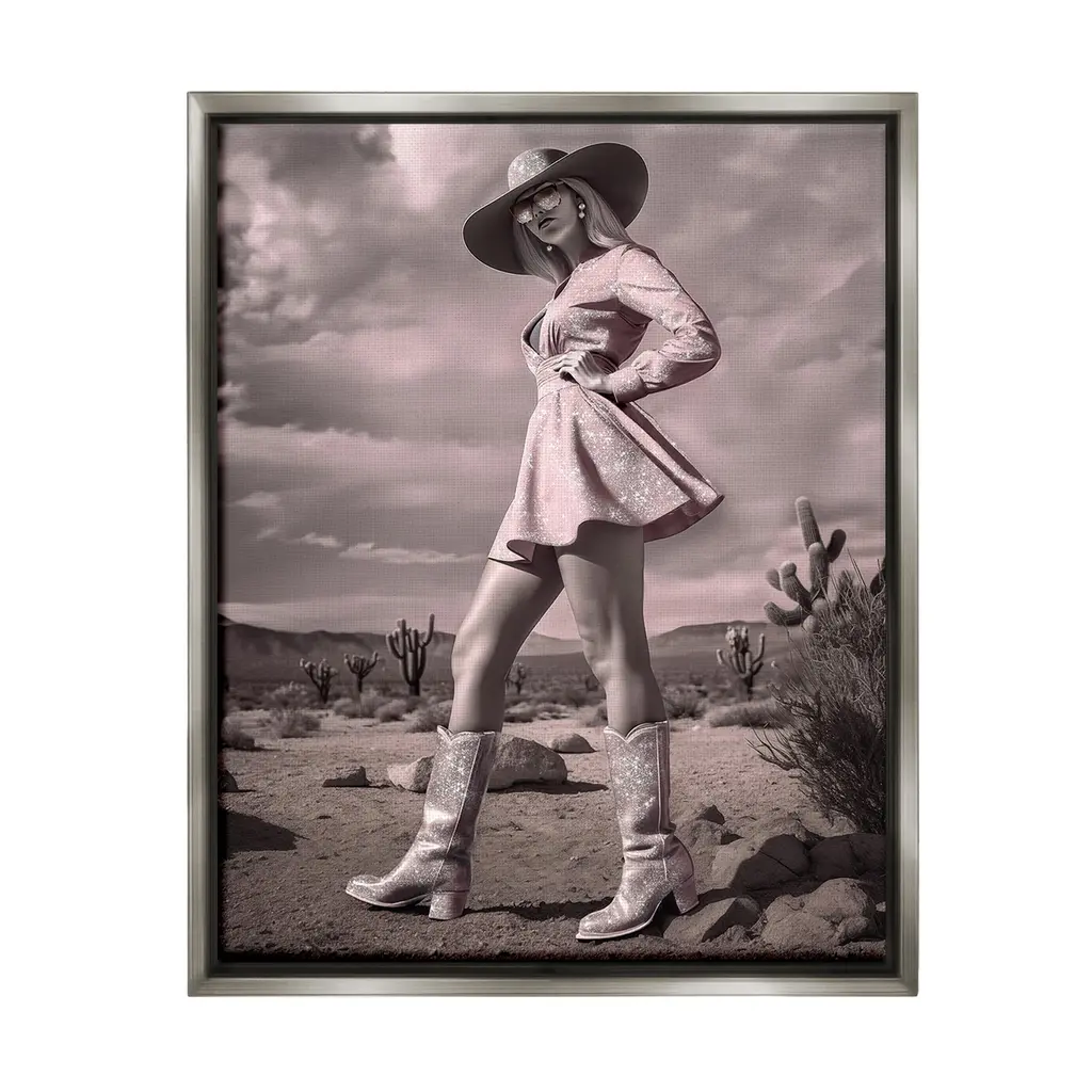 Elevate your home or office to the next level with Stupell Framed Floating Canvas Wall Art. Our premium hand-stretched canvas is mounted securely into a sturdy lightweight frame. The museum-style gap between the wrapped canvas and the box frame gives the illusion of floating artwork. Stupell Wall Art is made in the USA.Features: Dimensions: 17 x 1.7 x 21 Frame, 16 x 1.5 x 20 Canvas ArtFloating Frame Canvas Products are available in sizes 17"x21" and 25"x31". All Floating Frame Canvas Products have a 1.7" Depth.Wall Art is Ready to Hang with Hardware Free Hanging. No Installation required. For Easy Set Up Lean or Layer Artwork on Shelf or Against Wall. Artwork is Permently Fixed into the Frame.Our elevated 1.7" Thick Floating Frame is the perfect complement to our canvas style Wall Art. We use only the highest quality inks in house with industry leading printing solutions. Canvas is hand stretched over a durable wood foundation and then mounted securly into a Modern Box Frame. Made in the USA.Artwork Relates To: Dress, Person, Female, Girl, Fashion, Glam, Desert, Cowgirl, CactusDesign by Ziwei Li