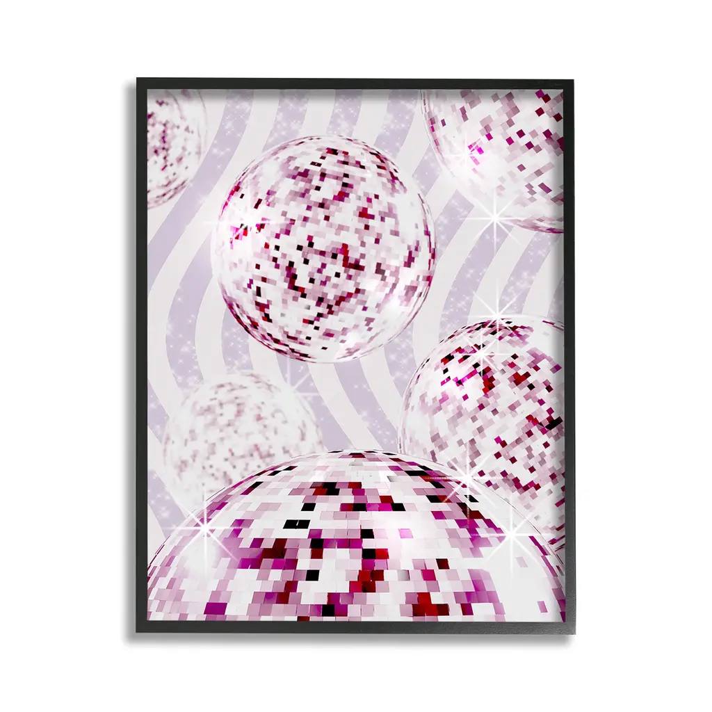 Stupell Glam Disco On Stripes Framed Floater Canvas Wall Art Design By Ziwei Li - 17 X 21 - Black