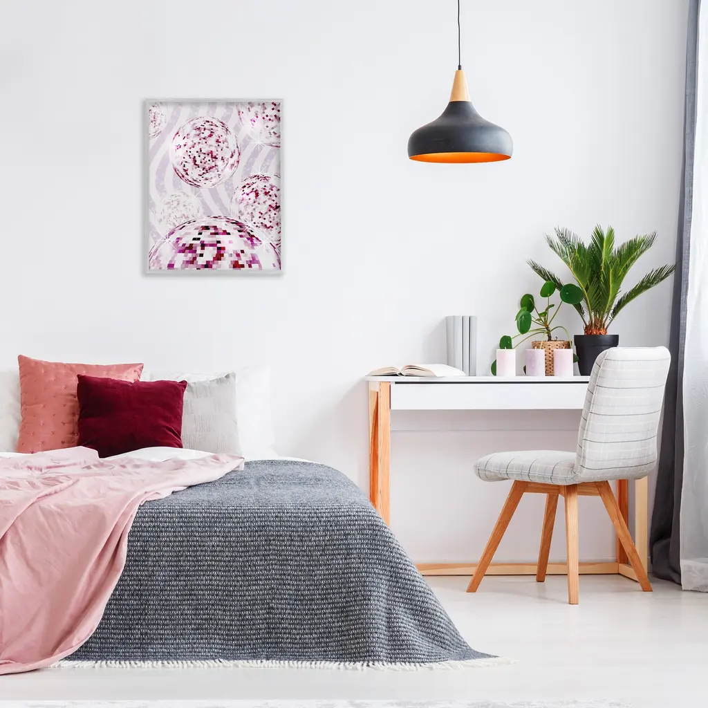 Add dimension to any room with our textured Framed Giclee Artwork. Our framed artwork is securely mounted into a 1.5-inch thick wood grain frame and ready to hang. Frames are available in three alluring styles: black, gray farmhouse and white. In addition, you should check out our oversized options if you want a statement piece. Stupell Wall Art is made in the USA.Features: Dimensions: 11 x 1.5 x 14 FramedFramed Giclee Products are available in the sizes 11"x14", 16"x20" or 24"x30". All Framed Giclee Products have a 1.5" Depth. Wall Art is Ready to Hang with Hardware Free Hanging. No installation required. For Easy Set Up Lean or Layer Artwork on Shelf or Against Wall.Our giclée prints are carefully mounted on a durable MDF backing, and then perfectly finished in a 1.5 inch thick woodgrain frame. Mounted frame colors include black, gray farmhouse and white. Made In USA.Artwork Relates To: Dance, Music, Disco, Pattern, Abstract, Shape, Modern, GlamDesign by Ziwei Li