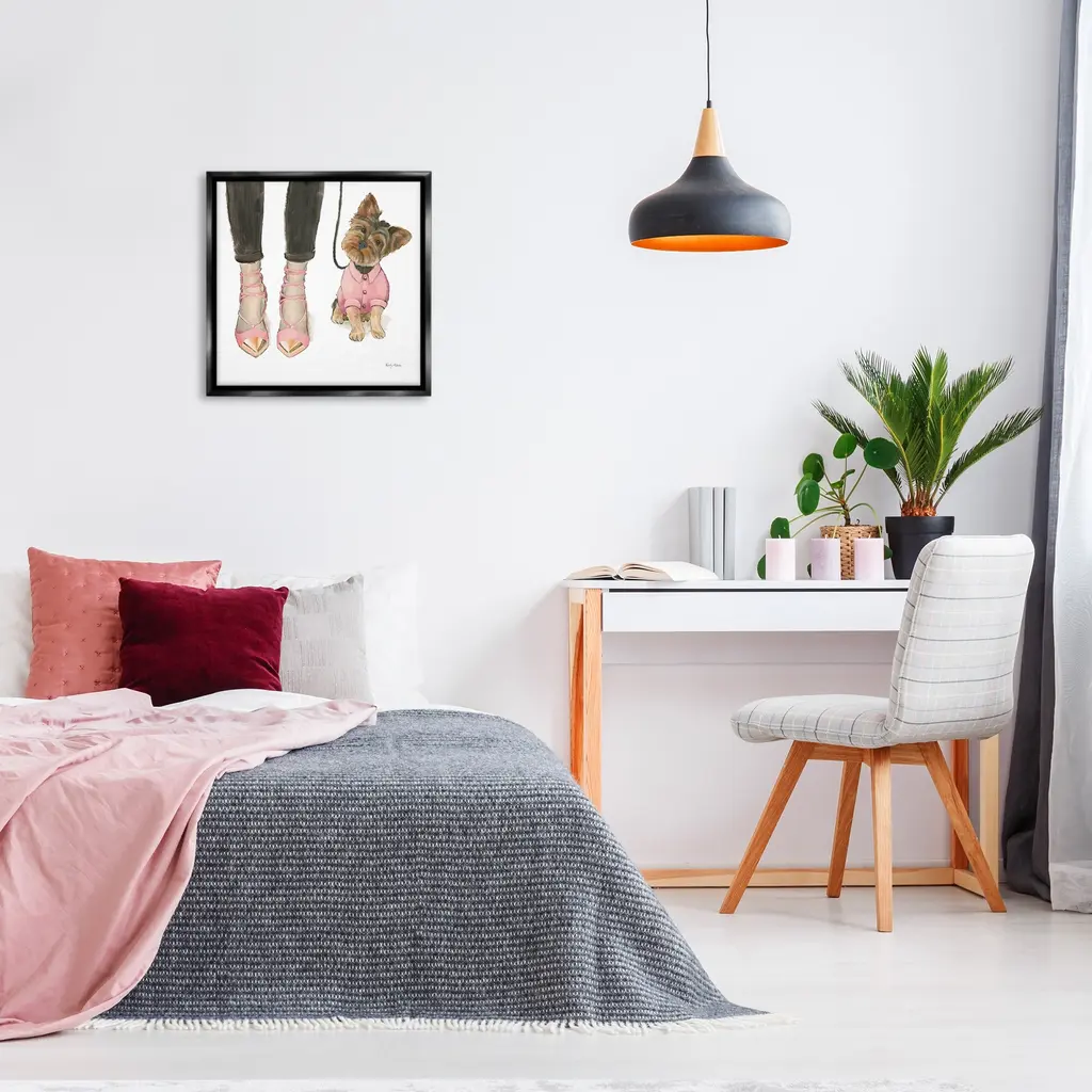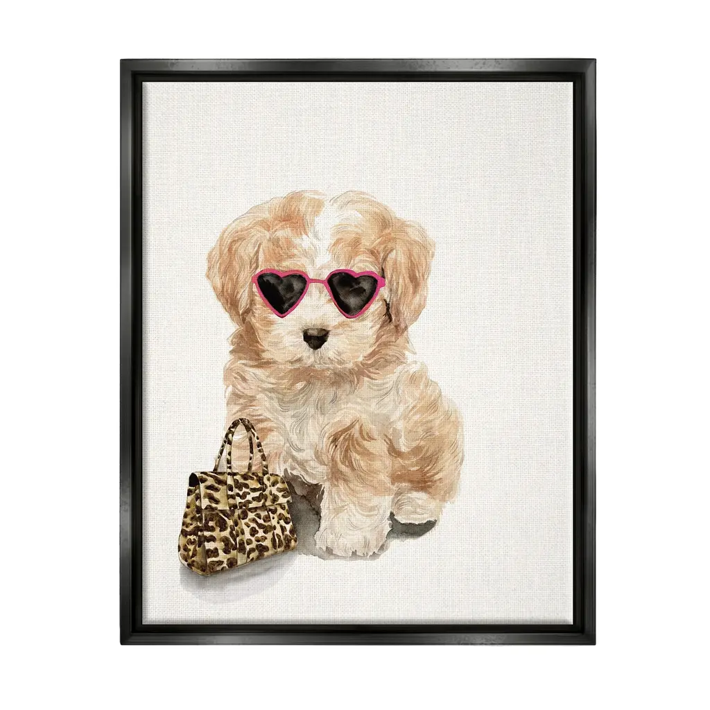 Elevate your home or office to the next level with Stupell Framed Floating Canvas Wall Art. Our premium hand-stretched canvas is mounted securely into a sturdy lightweight frame. The museum-style gap between the wrapped canvas and the box frame gives the illusion of floating artwork. Stupell Wall Art is made in the USA.Features: Dimensions: 18 x 1.7 x 18 Frame, 17 x 1.5 x 17 Canvas ArtFloating Frame Canvas Products are available in sizes 18"x18" and 25"x25". All Floating Frame Canvas Products have a 1.7" Depth.Wall Art is Ready to Hang with Hardware Free Hanging. No Installation required. For Easy Set Up Lean or Layer Artwork on Shelf or Against Wall. Artwork is Permently Fixed into the Frame.Our elevated 1.7" Thick Floating Frame is the perfect complement to our canvas style Wall Art. We use only the highest quality inks in house with industry leading printing solutions. Canvas is hand stretched over a durable wood foundation and then mounted securly into a Modern Box Frame. Made in the USA.Artwork Relates To: Glam, Woman, Female, Pet, Puppy, Dog, FashionDesign by Emily Adams