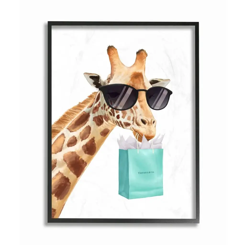 Stupell Glam Fashion Giraffe Animal Blue Painting Framed Wall Art, Design By Artist Ziwei Li - 24 X 30 - Black