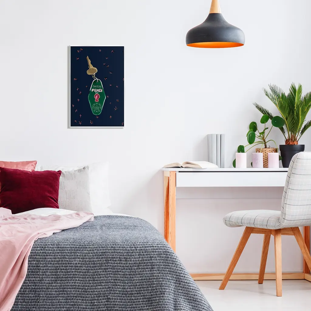 Our wall plaques start as high-quality lithograph prints mounted on durable 0.5-inch thick MDF wood. Each piece is hand finished and comes with a fresh layer of white foil on the sides to give it a crisp, clean look. Plaques arrive ready to hang without installation and come with removable plastic corners to keep them from damage in transit. Wall Art is made in the USA.Features: Dimensions: 10 x 0.5 x 15 InchesWall Plaque Sizes Include Standard: 10 x 0.5 x 15 Oversized: 13 x 0.5 x 19Wall Art is Ready to Hang with Hardware Free Hanging. No installation required. For Easy Set Up Lean or Layer Artwork on Shelf or Against Wall.All of our wall plaques start off as high quality lithograph prints that are then mounted on durable 0.5 inch thick MDF wood. Each piece is hand finished and comes with a fresh layer of foil on the sides to give it a crisp clean look. Made In USA.Artwork Relates To: Key, Pattern, Glam, FashionDesign by Amelia Noyes