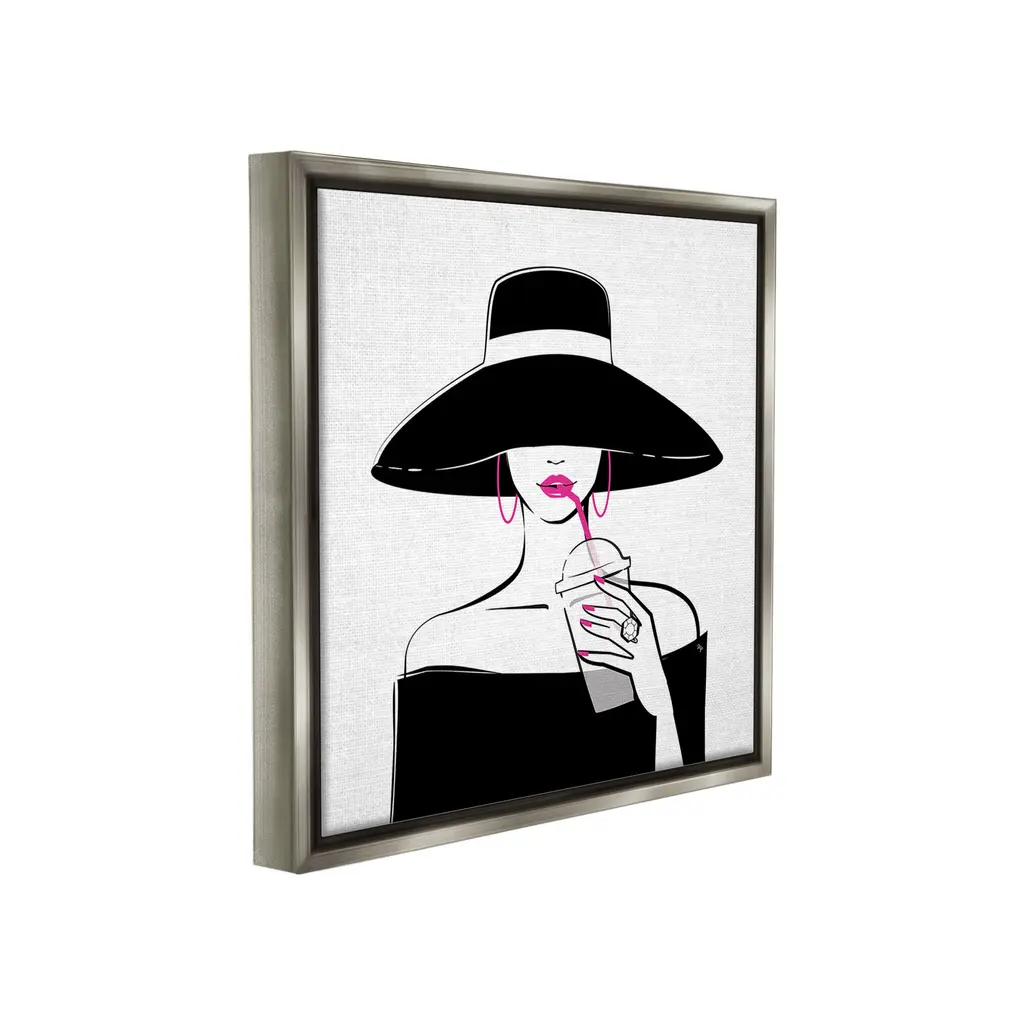 Elevate your home or office to the next level with Stupell Framed Floating Canvas Wall Art. Our premium hand-stretched canvas is mounted securely into a sturdy lightweight frame. The museum-style gap between the wrapped canvas and the box frame gives the illusion of floating artwork. Stupell Wall Art is made in the USA.Features: Dimensions: 18 x 1.7 x 18 Frame, 17 x 1.5 x 17 Canvas ArtFloating Frame Canvas Products are available in sizes 18"x18" and 25"x25". All Floating Frame Canvas Products have a 1.7" Depth.Wall Art is Ready to Hang with Hardware Free Hanging. No Installation required. For Easy Set Up Lean or Layer Artwork on Shelf or Against Wall. Artwork is Permently Fixed into the Frame.Our elevated 1.7" Thick Floating Frame is the perfect complement to our canvas style Wall Art. We use only the highest quality inks in house with industry leading printing solutions. Canvas is hand stretched over a durable wood foundation and then mounted securly into a Modern Box Frame. Made in the USA.Artwork Relates To: Female, Person, Woman, Sun Hat, Beverage, Coffee, Fashion, Glam, MinimalDesign by Martina Pavlova