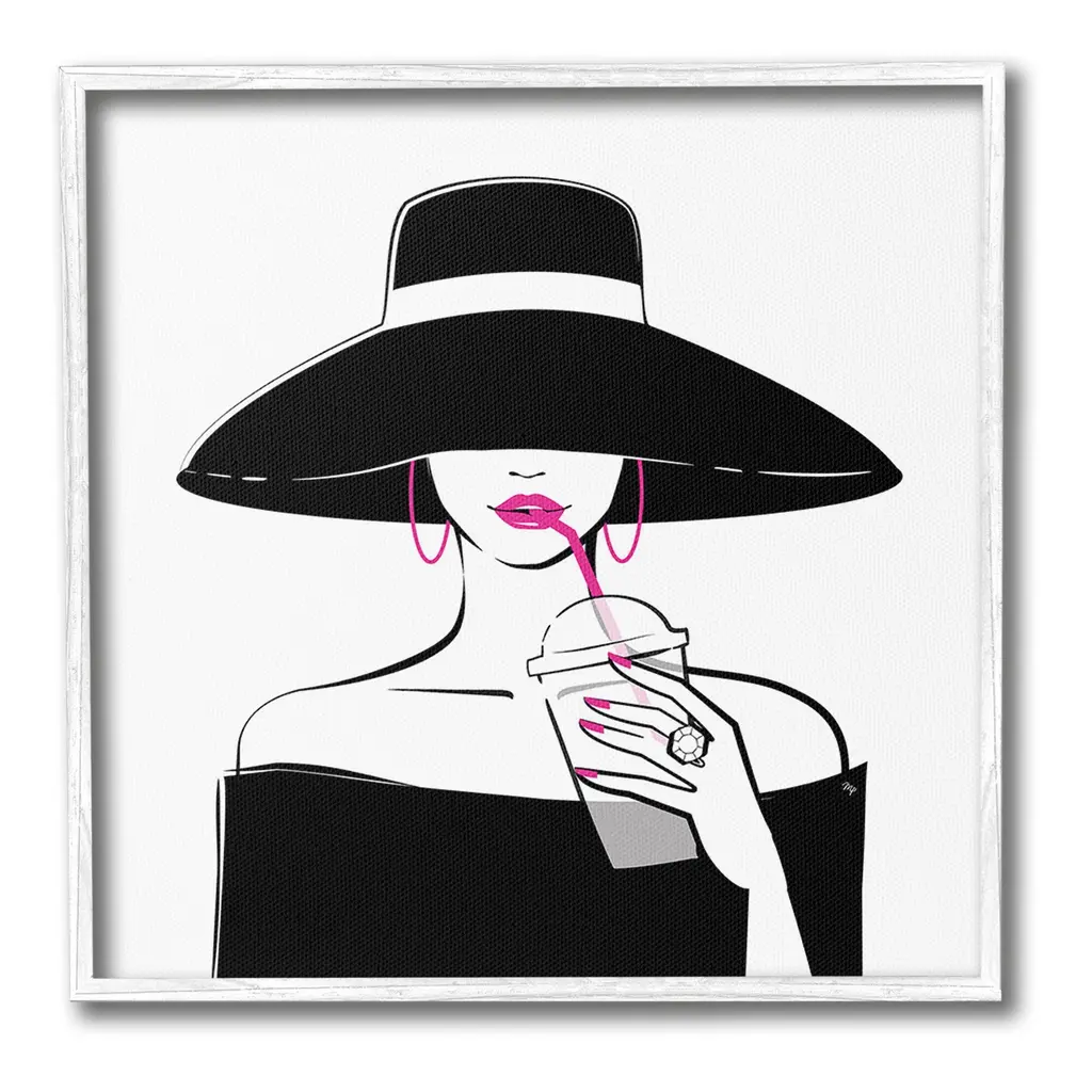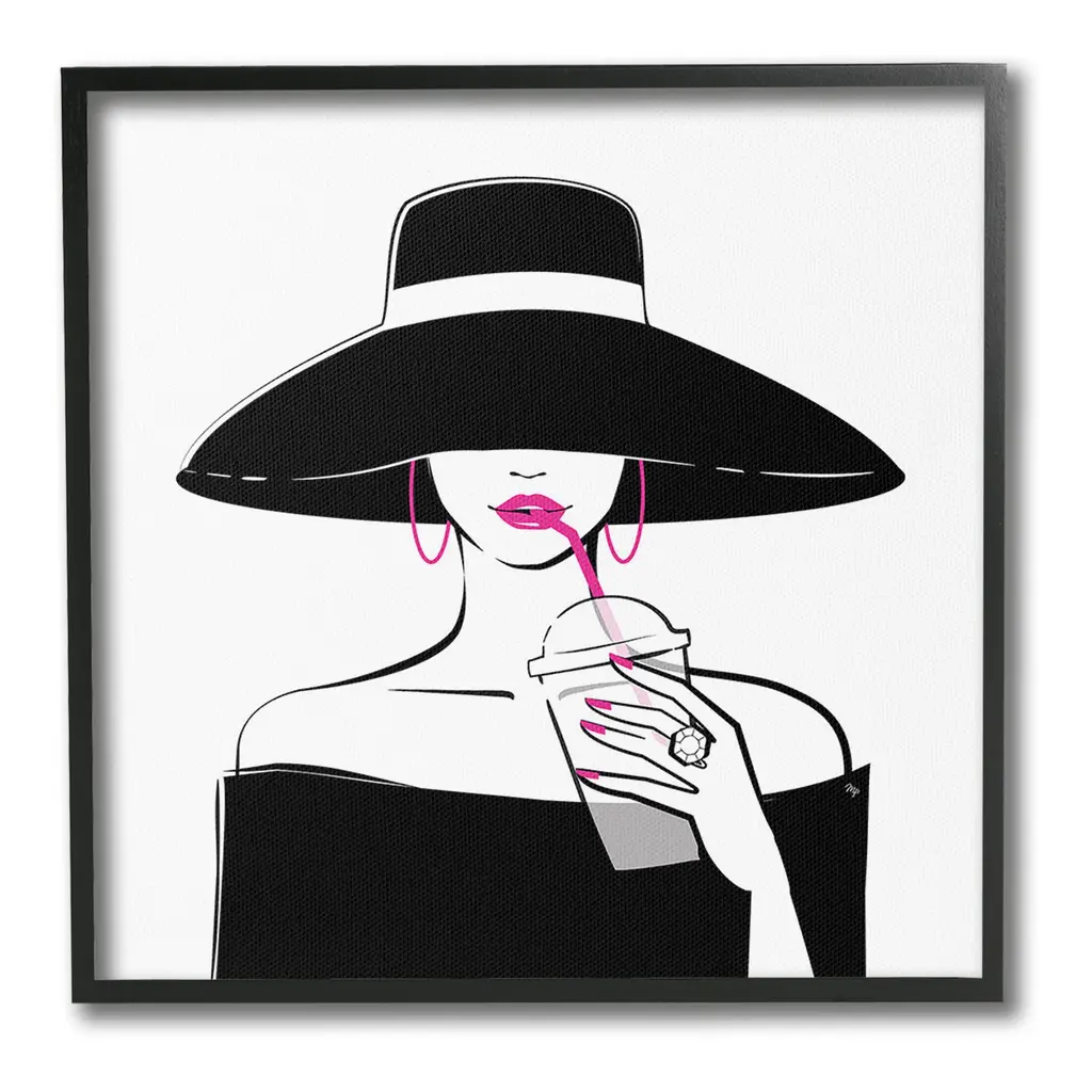 Add dimension to any room with our textured Framed Giclee Artwork. Our framed artwork is securely mounted into a 1.5-inch thick wood grain frame and ready to hang. Frames are available in three alluring styles: black, gray farmhouse and white. In addition, you should check out our oversized options if you want a statement piece. Stupell Wall Art is made in the USA.Features: Dimensions: 12 x 1.5 x 12 FramedFramed Giclee Product Sizes Include 12"x12", 17"x17", and 24"x24". Framed Giclee Products have a 1.5" Depth. Wall Art is Ready to Hang with Hardware Free Hanging. No installation required. For Easy Set Up Lean or Layer Artwork on Shelf or Against Wall.Our giclée prints are carefully mounted on a durable MDF backing, and then perfectly finished in a 1.5 inch thick woodgrain frame. Mounted frame colors include black, gray farmhouse and white. Made In USA.Artwork Relates To: Female, Person, Woman, Sun Hat, Beverage, Coffee, Fashion, Glam, MinimalDesign by Martina Pavlova
