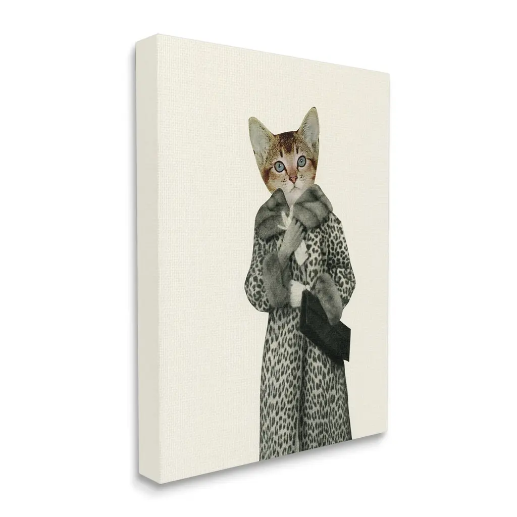Stupell Glam Leopard Pattern Vintage Coat Fashion Cat Canvas Wall Art - White - 16 X 20