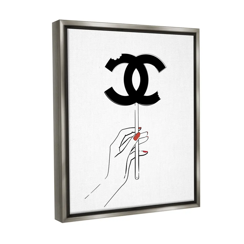 Stupell Glam Logo With Bite Framed Floater Canvas Wall Art Design By Martina Pavlova - 17 X 21 - Grey