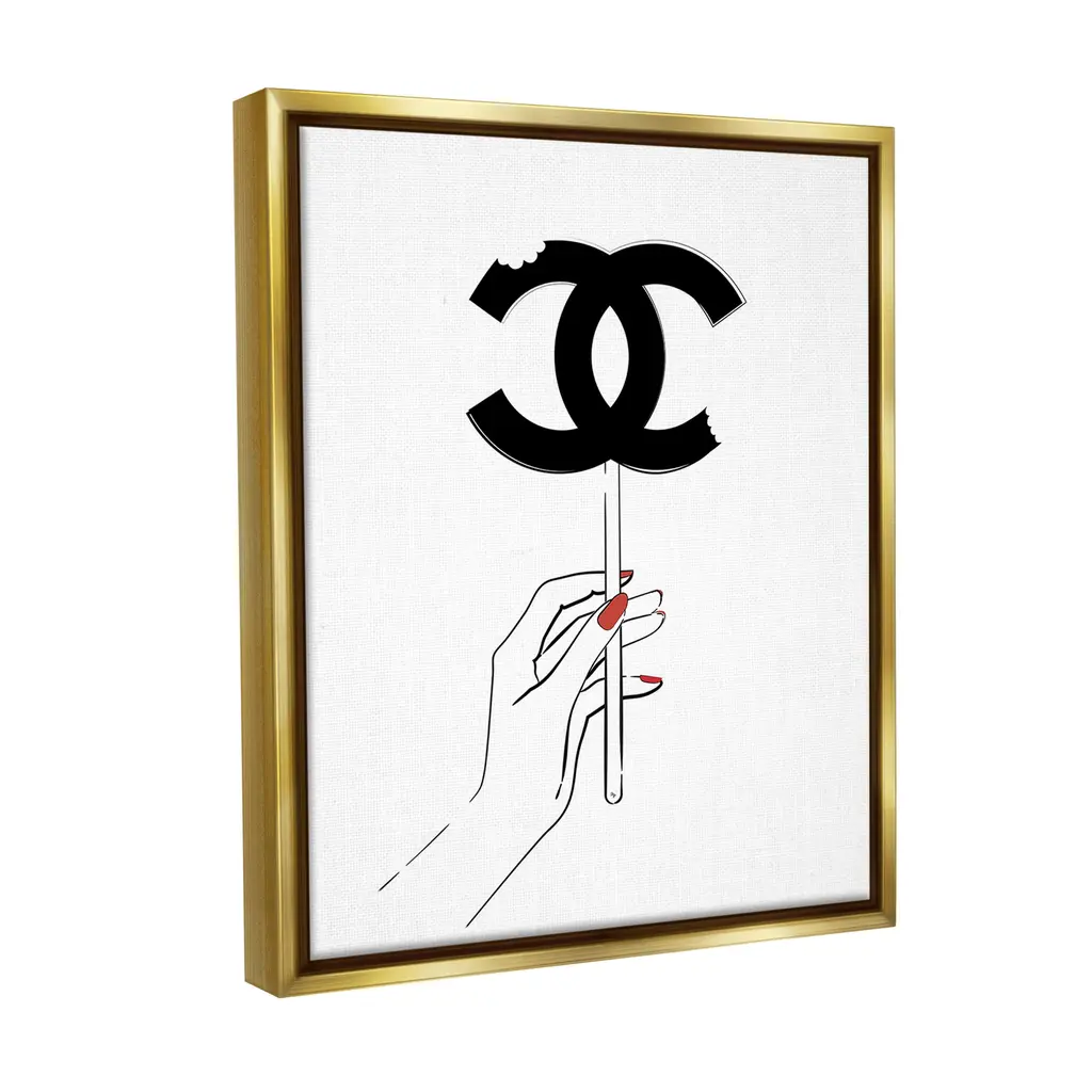 Stupell Glam Logo With Bite Framed Floater Canvas Wall Art Design By Martina Pavlova - 25 X 31 - Gold