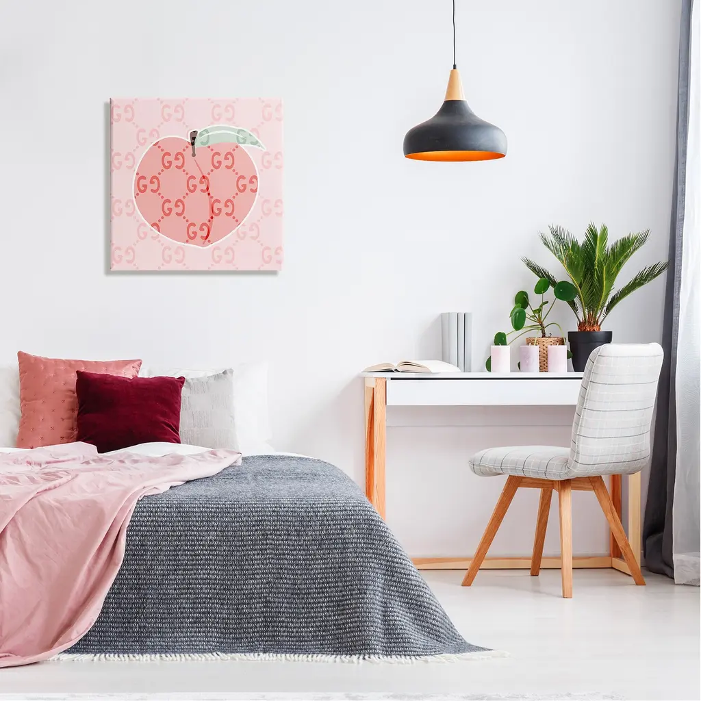 We create our stretched canvas to the highest standards. Using only the highest quality inks and canvas on Mimaki printers, we hand-cut and stretch each piece over a 1.5-inch thick wooden frame for hanging. As a result, the art comes ready to hang on the sturdy ledge with no installation required. Stupell Wall Art is made in the USA.Features: Dimensions: 17 x 1.5 x 17 InchesStretched Canvas Sizes Include Standard: 17 x 1.5 x 17 Large: 24 x 1.5 x 24 X-Large: 30 x 1.5 x 30 Oversized: 36 x 1.5 x 36Wall Art is Ready to Hang with Hardware Free Hanging. No installation required. For Easy Set Up Lean or Layer Artwork on Shelf or Against Wall.Our stretched canvas is created with the highest standards. We use only the highest quality inks and canvas on our in house Mimaki printers, and then hand cut and stretch each piece over a 1.5 inch thick wooden frame for hanging. Made In USA.Artwork Relates To: Food, Fruit, Plant, Peach, Pattern, Glam, FashionDesign by Lil' Rue