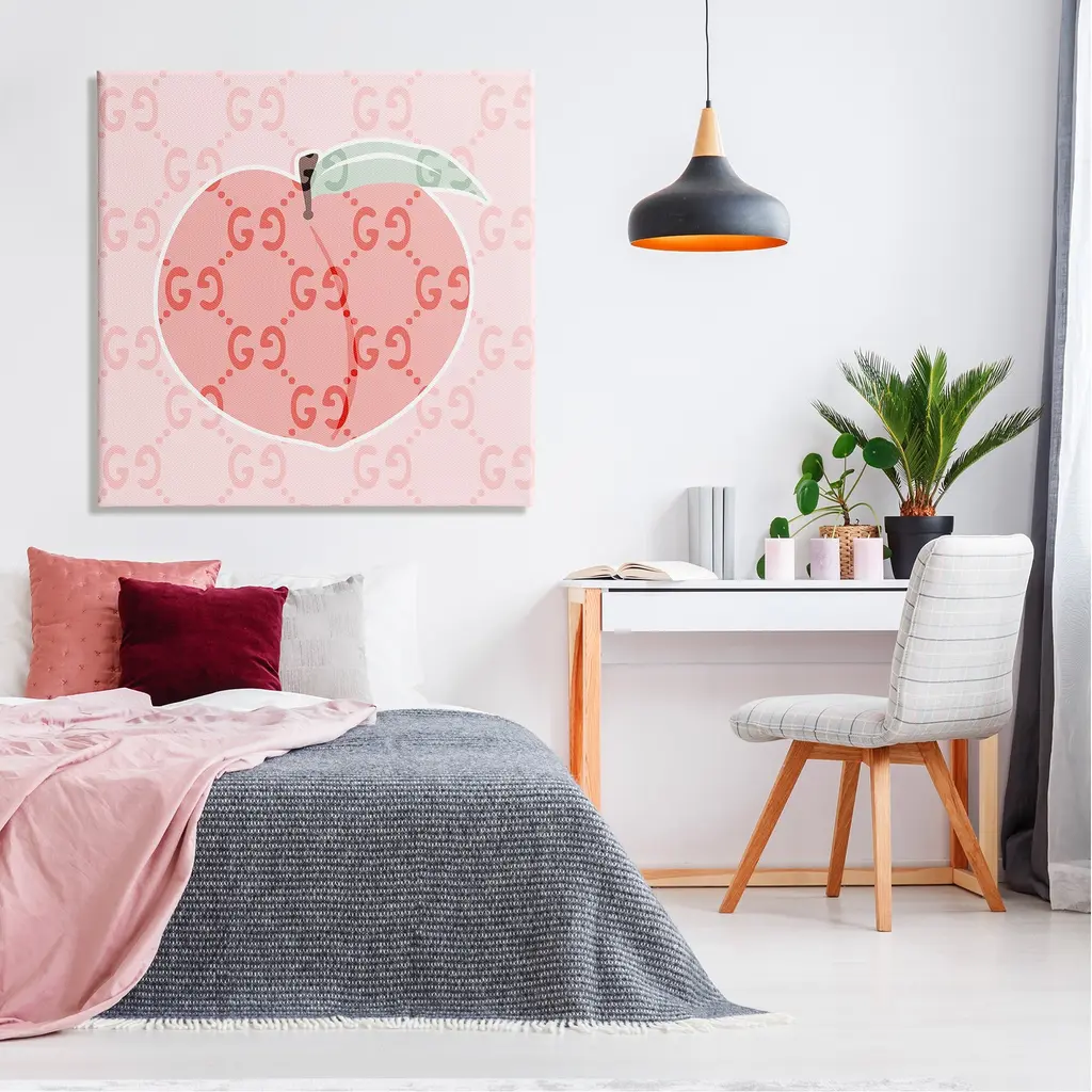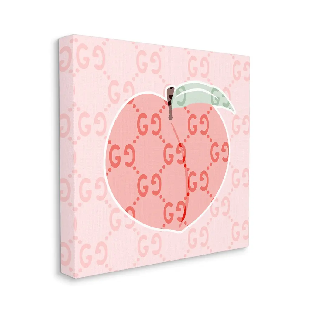 We create our stretched canvas to the highest standards. Using only the highest quality inks and canvas on Mimaki printers, we hand-cut and stretch each piece over a 1.5-inch thick wooden frame for hanging. As a result, the art comes ready to hang on the sturdy ledge with no installation required. Stupell Wall Art is made in the USA.Features: Dimensions: 17 x 1.5 x 17 InchesStretched Canvas Sizes Include Standard: 17 x 1.5 x 17 Large: 24 x 1.5 x 24 X-Large: 30 x 1.5 x 30 Oversized: 36 x 1.5 x 36Wall Art is Ready to Hang with Hardware Free Hanging. No installation required. For Easy Set Up Lean or Layer Artwork on Shelf or Against Wall.Our stretched canvas is created with the highest standards. We use only the highest quality inks and canvas on our in house Mimaki printers, and then hand cut and stretch each piece over a 1.5 inch thick wooden frame for hanging. Made In USA.Artwork Relates To: Food, Fruit, Plant, Peach, Pattern, Glam, FashionDesign by Lil' Rue