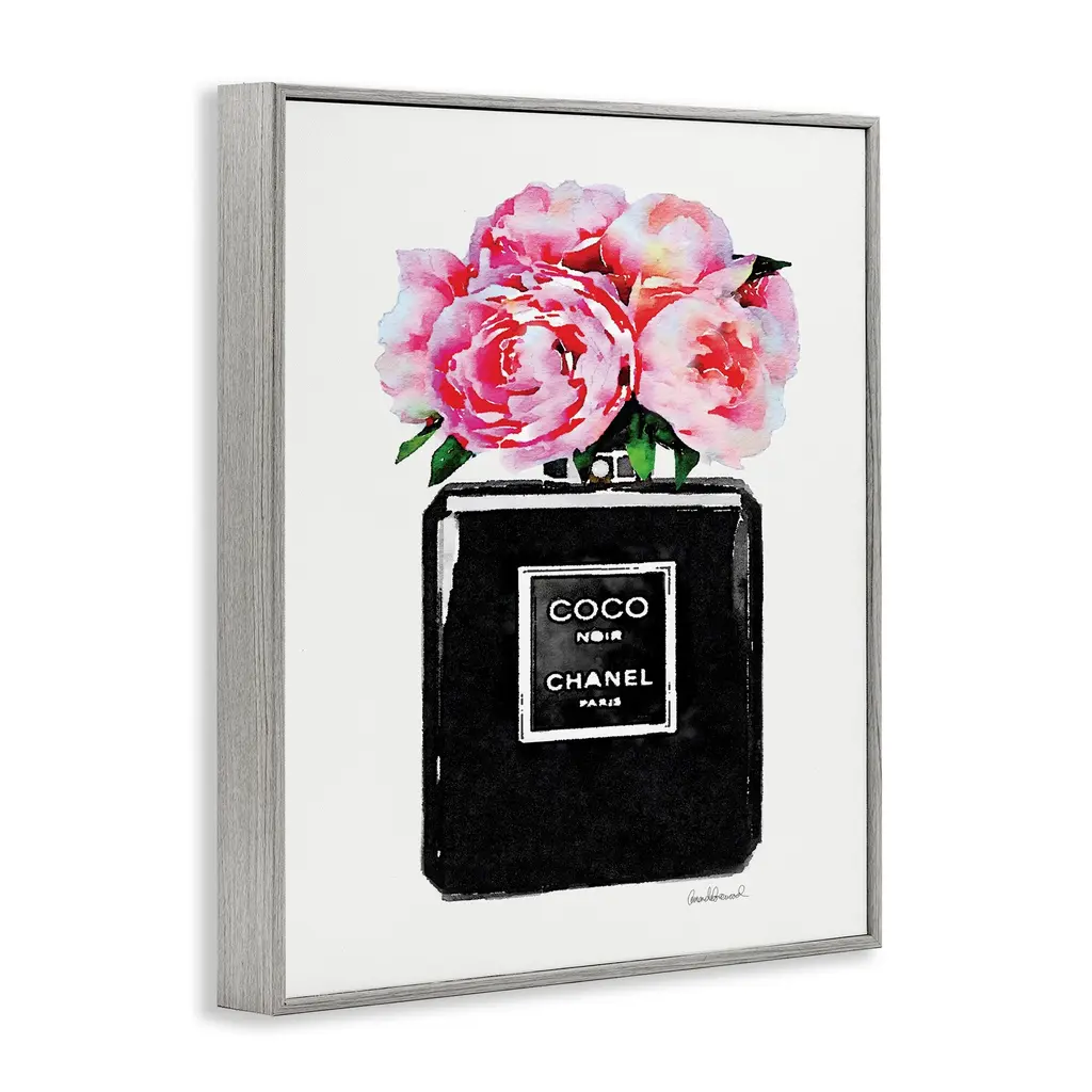 Stupell Glam Perfume Bottle Flower Black Peony Pink Framed Wall Art - 11 X 14 - Grey