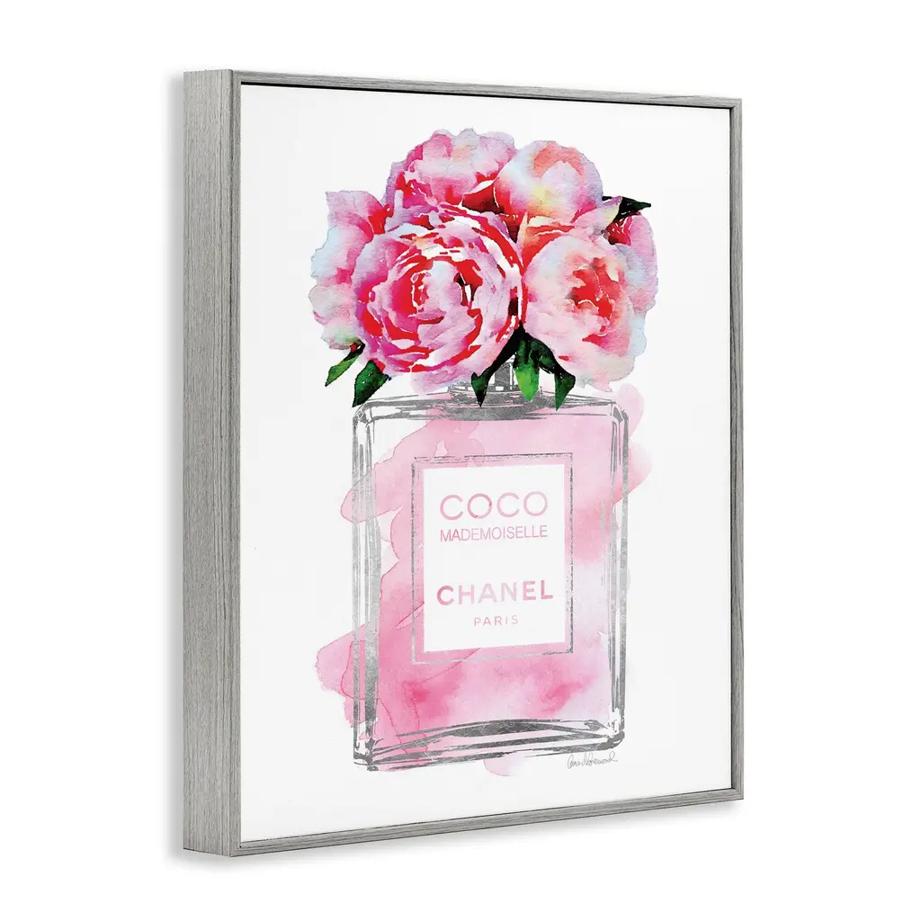 Stupell Glam Perfume Bottle V2 Flower Silver Pink Peony Framed Wall Art - 16 X 20 - Grey
