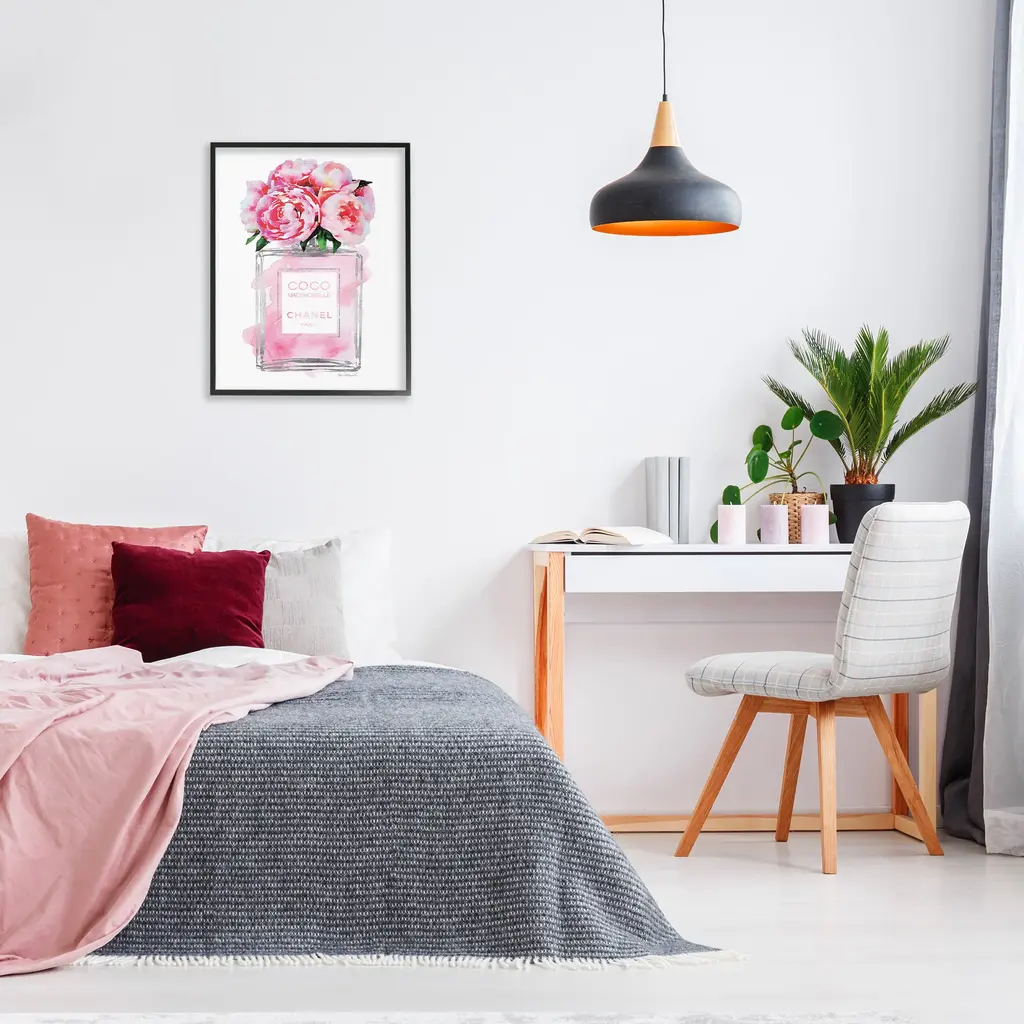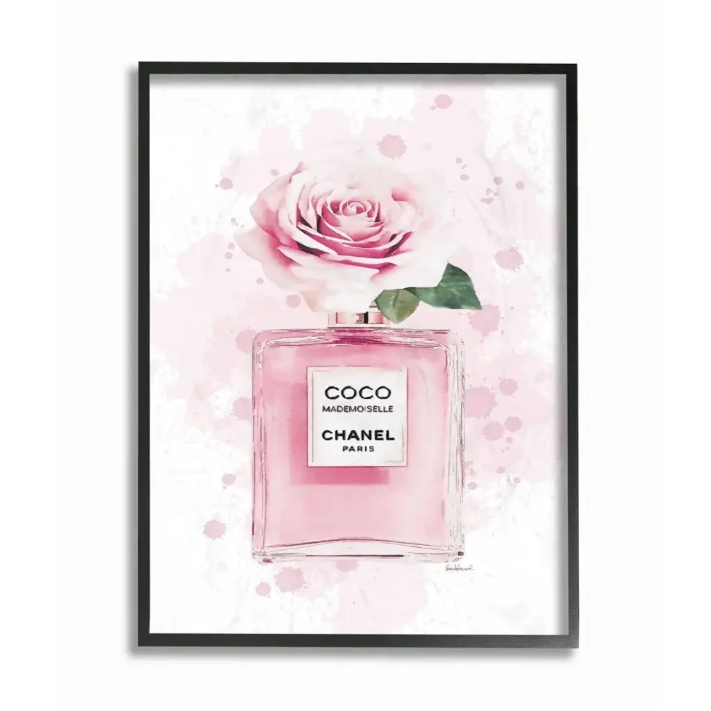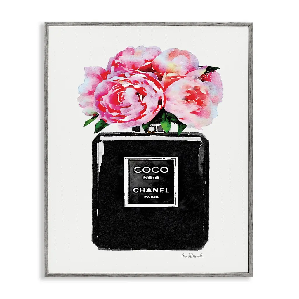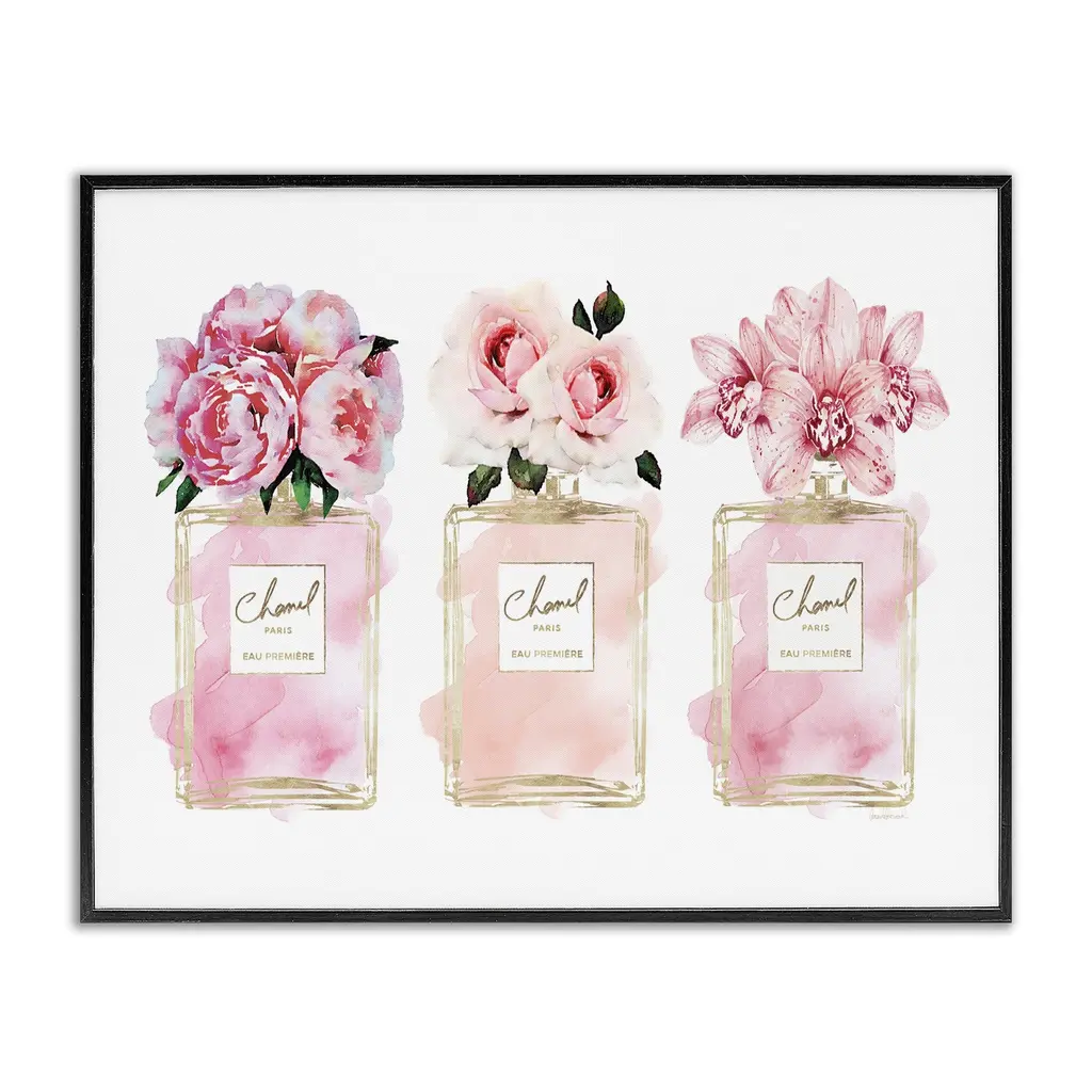 Stupell Glam Perfume Bottle V2 Flower Silver Pink Peony Framed Wall Art - 24 X 30 - Black