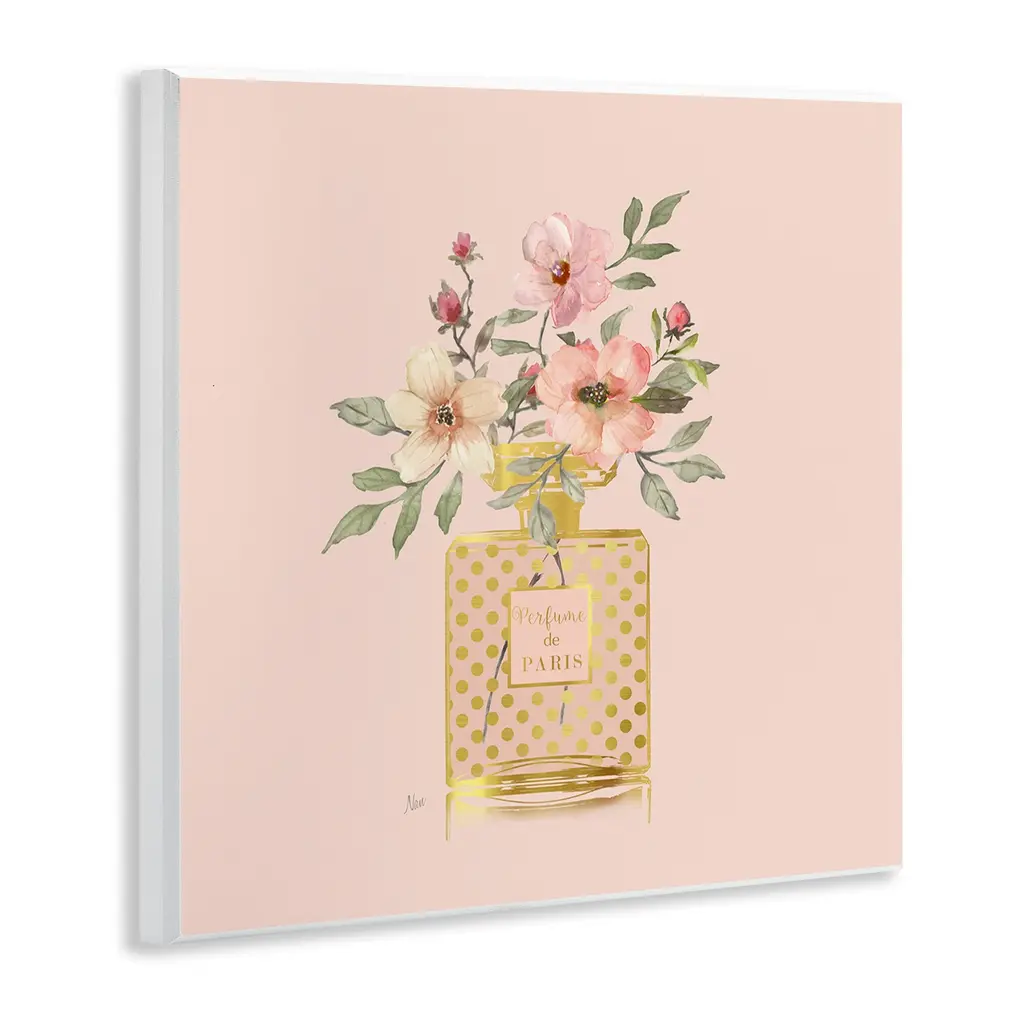 Our wall plaques start as high-quality lithograph prints mounted on durable 0.5-inch thick MDF wood. Each piece is hand finished and comes with a fresh layer of white foil on the sides to give it a crisp, clean look. Plaques arrive ready to hang without installation and come with removable plastic corners to keep them from damage in transit. Stupell Wall Art is made in the USA.Features: Dimensions: 12 x 0.5 x 12 InchesWall Art is Ready to Hang with Hardware Free Hanging. No installation required. For Easy Set Up Lean or Layer Artwork on Shelf or Against Wall.All of our wall plaques start off as high quality lithograph prints that are then mounted on durable 0.5 inch thick MDF wood. Each piece is hand finished and comes with a fresh layer of foil on the sides to give it a crisp clean look. Made In USA.Artwork Relates To: Plant, Bottle, Flower, Cosmetics, Perfume, Floral, Glam, FashionDesign by Nan