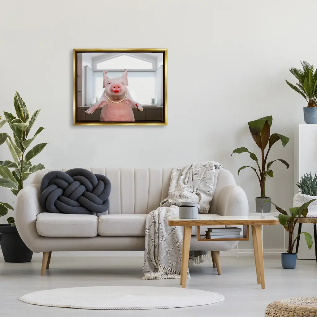 Elevate your home or office to the next level with Stupell Framed Floating Canvas Wall Art. Our premium hand-stretched canvas is mounted securely into a sturdy lightweight frame. The museum-style gap between the wrapped canvas and the box frame gives the illusion of floating artwork. Stupell Wall Art is made in the USA.Features: Dimensions: 21 x 1.7 x 17 Frame, 20 x 1.5 x 16 Canvas ArtFloating Frame Sizes Include Standard: 21 x 1.7 x 17 Oversized: 31 x 1.7 x 25Wall Art is Ready to Hang with Hardware Free Hanging. No installation required. For Easy Set Up Lean or Layer Artwork on Shelf or Against Wall.Our elevated 1.7" Thick Floating Frame is the perfect complement to our canvas style Wall Art. We use only the highest quality inks in house with industry leading printing solutions. Canvas is hand stretched over a durable wood foundation and then mounted securly into a Modern Box Frame. Made in the USA.Artwork Relates To: Animal, Mammal, Pig, Jewelry, Necklace, MakeupDesign by Lund Roeser