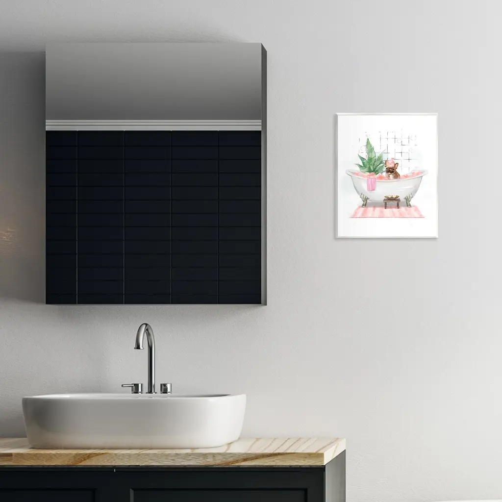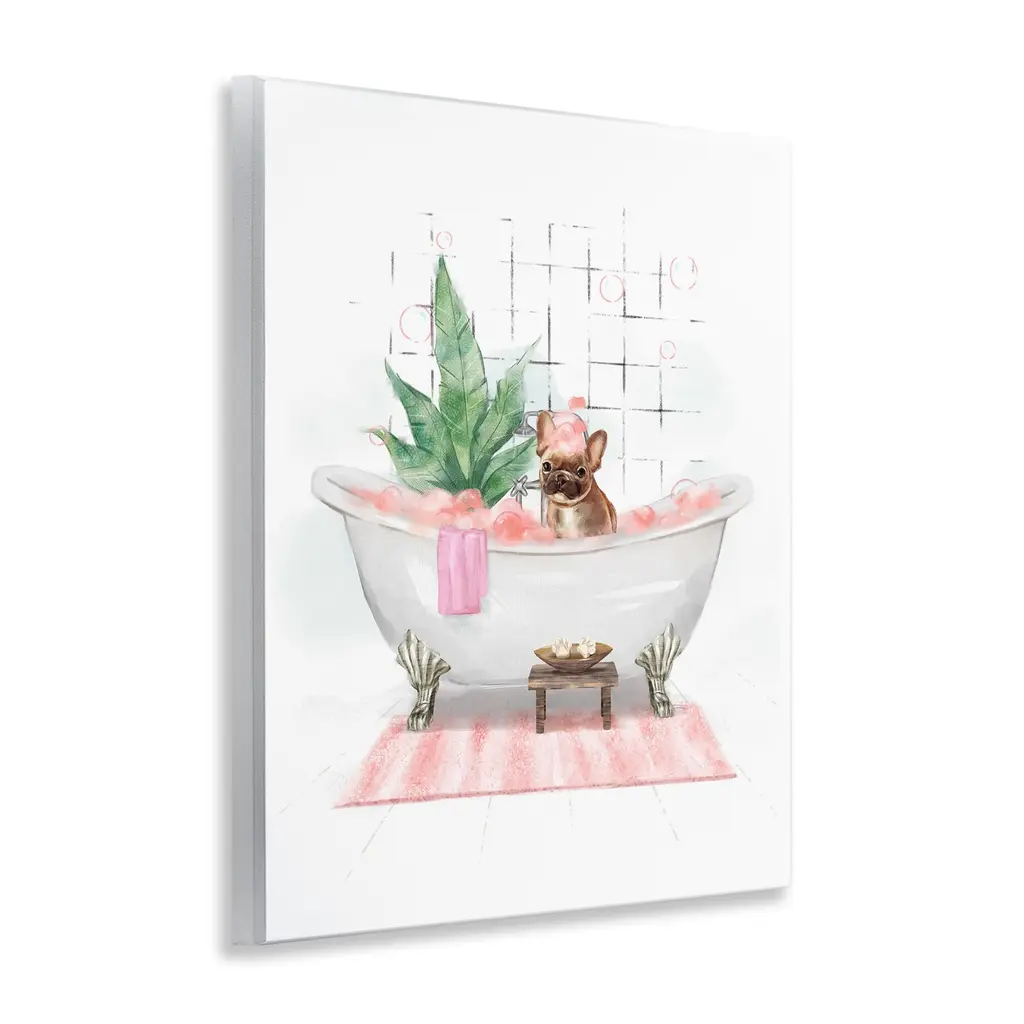 Our wall plaques start as high-quality lithograph prints mounted on durable 0.5-inch thick MDF wood. Each piece is hand finished and comes with a fresh layer of white foil on the sides to give it a crisp, clean look. Plaques arrive ready to hang without installation and come with removable plastic corners to keep them from damage in transit. Stupell Wall Art is made in the USA.Features: Dimensions: 11 x 0.5 x 14 InchesWall Art is Ready to Hang with Hardware Free Hanging. No installation required. For Easy Set Up Lean or Layer Artwork on Shelf or Against Wall.All of our wall plaques start off as high quality lithograph prints that are then mounted on durable 0.5 inch thick MDF wood. Each piece is hand finished and comes with a fresh layer of foil on the sides to give it a crisp clean look. Made In USA.Artwork Relates To: Bathroom, Tub, Bathtub, Animal, Plant, Pink, DogDesign by Ziwei Li