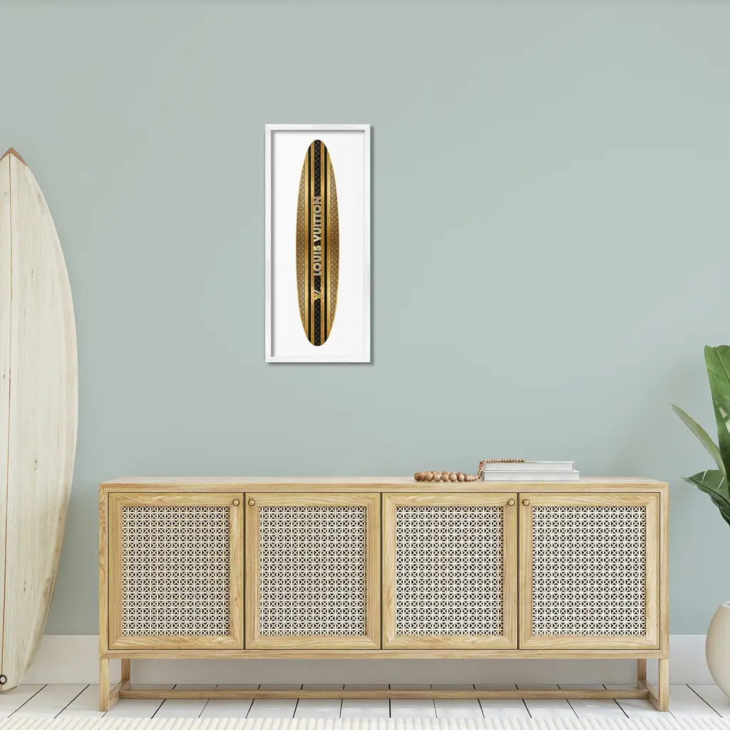 Add dimension to any room with our textured Framed Giclee Artwork. Our framed artwork is securely mounted into a 1.5-inch thick wood grain frame and ready to hang. Frames are available in three alluring styles: black, gray farmhouse and white. In addition, you should check out our oversized options if you want a statement piece. Stupell Wall Art is made in the USA.Features: Dimensions: 10 x 1.5 x 24 FramedFramed Giclee Product Sizes include 10"x24" and 13"x30". All Framed Giclee products have a 1.5" Depth.Wall Art is Ready to Hang with Hardware Free Hanging. No installation required. For Easy Set Up Lean or Layer Artwork on Shelf or Against Wall.Our giclée prints are carefully mounted on a durable MDF backing, and then perfectly finished in a 1.5 inch thick woodgrain frame. Mounted frame colors include black, gray farmhouse and white. Made In USA.Artwork Relates To: Nautical, Sport, Surfing, Surfboard, Glam, Fashion, Pattern, Logo, DesignerDesign by Madeline Blake