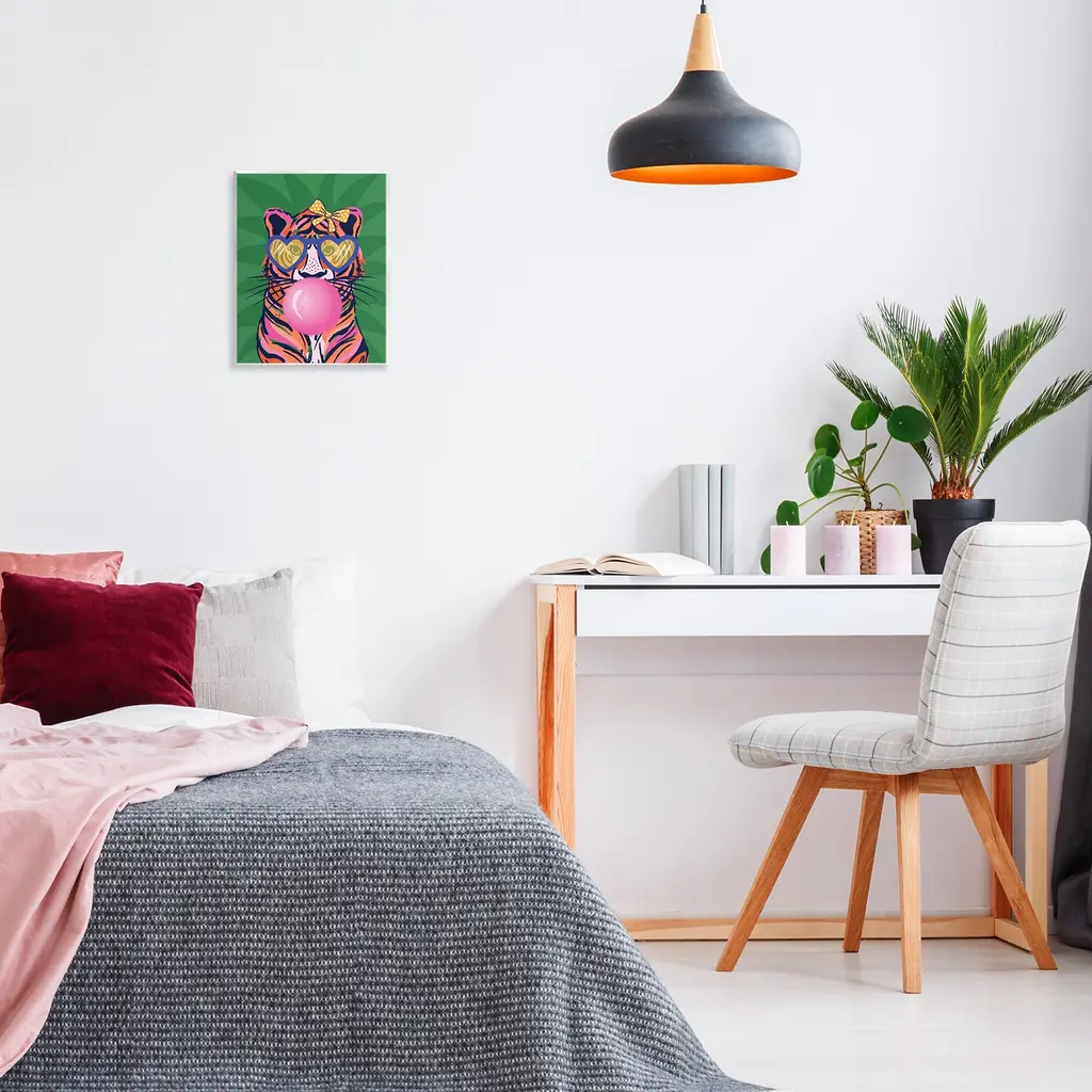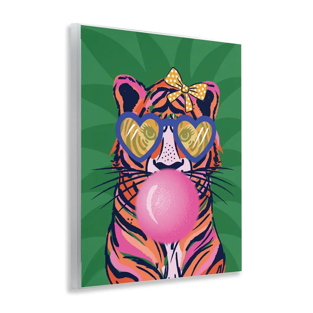 Stupell Glam Tiger Bubble Gum Wall Plaque Art Design By Lisa Perry Whitebutton - 11 X 14