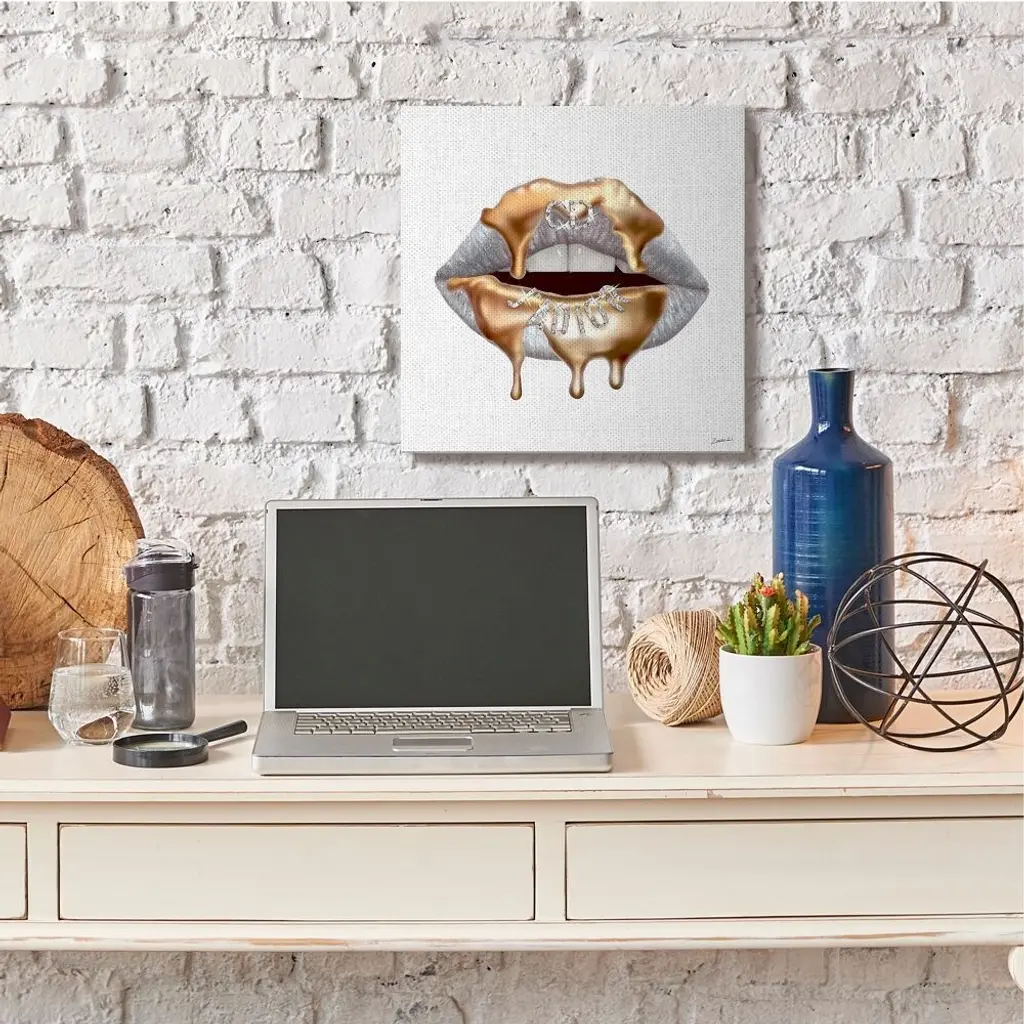 Stupell Glamourous Silver Lip Portrait High Fashion Styling Canvas Wall Art - Multi-Color - 17 X 17