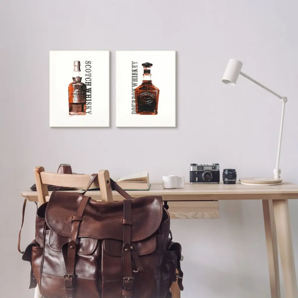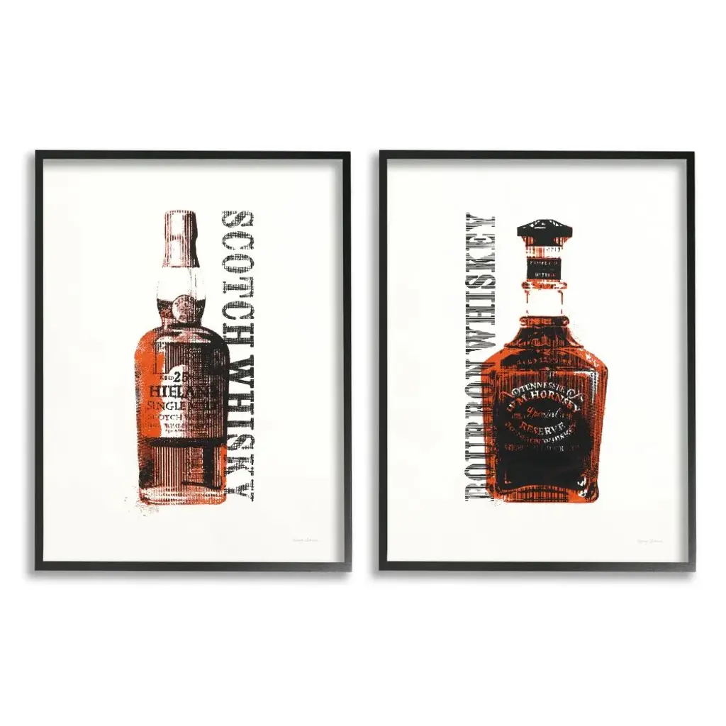Stupell Glass Whiskey Bottles Brown Black Alcohol Liquor,2pc Multi Piece Framed Wall Art Set - 11 X 14 - Grey