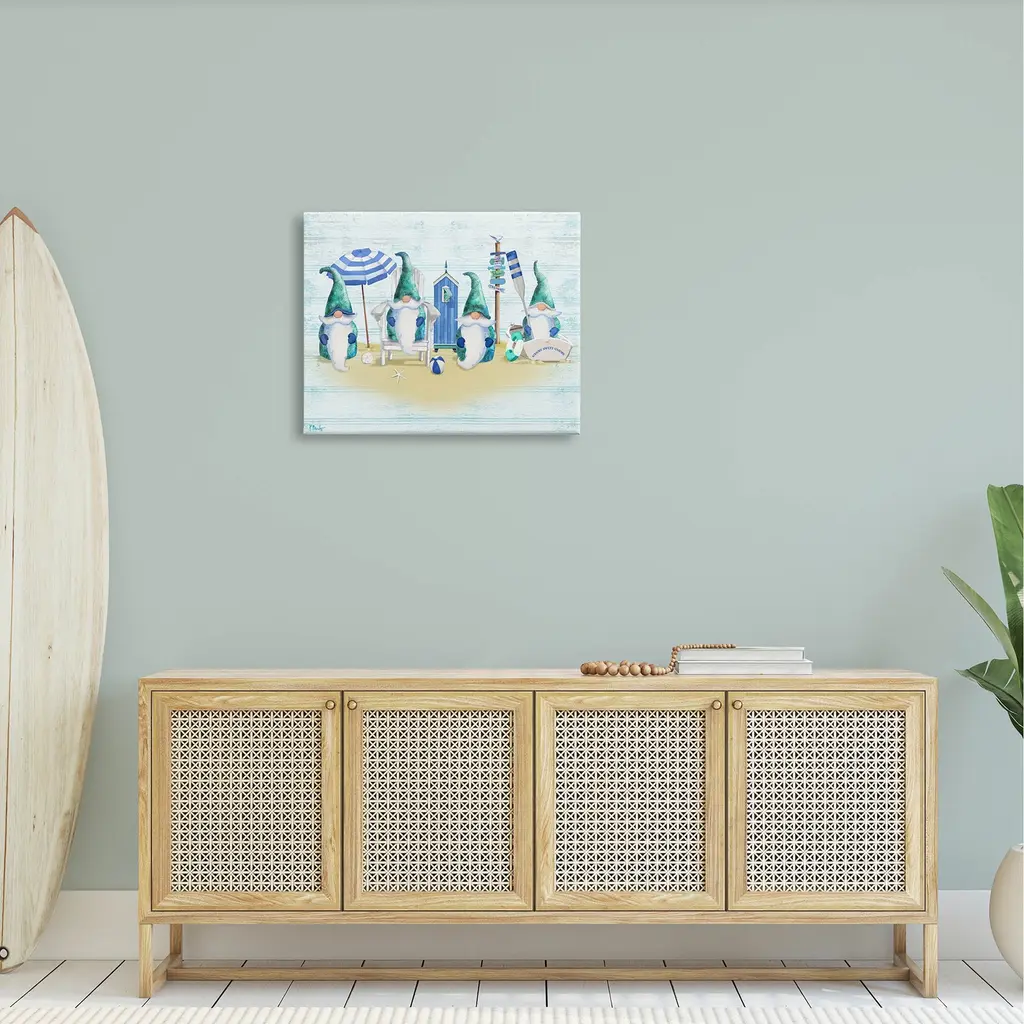 Proudly made in the USA, Our stretched canvas is created with the highest standards. We use only the highest quality inks and canvas on our in house Mimaki printers, and then hand cut and stretch each piece over a 1.5 inch thick wooden frame for hanging. The art comes ready to hang with no installation required.Features: Dimensions: 20 x 1.5 x 16 InchesStretched Canvas Sizes Include Standard: 20 x 1.5 x 16 Large: 30 x 1.5 x 20 X-Large: 40 x 1.5 x 30 Oversized: 48 x 1.5 x 36Wall Art is Ready to Hang - No Installation or Hardware Needed. For Easy Set Up Lean or Layer Artwork on Shelf or Against Wall.Our stretched canvas is created with the highest standards. We use only the highest quality inks and canvas on our in house Mimaki printers, and then hand cut and stretch each piece over a 1.5 inch thick wooden frame for hanging. Made In USA.Artwork Relates To: Nature, Outdoors, Gnome, Coastal, Surfing, Surfboard, Beach, Beach Umbrella, ShoreDesign by Paul Brent