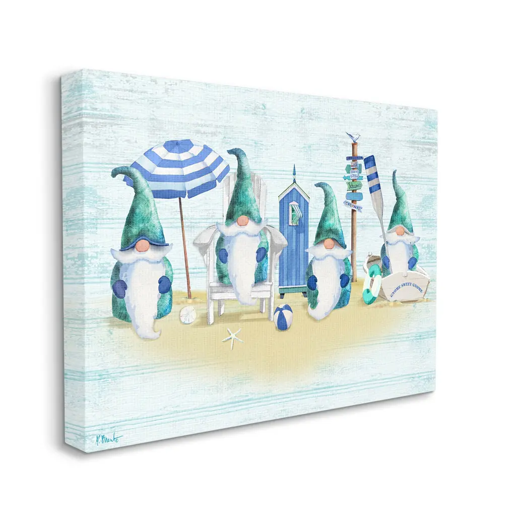 Proudly made in the USA, Our stretched canvas is created with the highest standards. We use only the highest quality inks and canvas on our in house Mimaki printers, and then hand cut and stretch each piece over a 1.5 inch thick wooden frame for hanging. The art comes ready to hang with no installation required.Features: Dimensions: 20 x 1.5 x 16 InchesStretched Canvas Sizes Include Standard: 20 x 1.5 x 16 Large: 30 x 1.5 x 20 X-Large: 40 x 1.5 x 30 Oversized: 48 x 1.5 x 36Wall Art is Ready to Hang - No Installation or Hardware Needed. For Easy Set Up Lean or Layer Artwork on Shelf or Against Wall.Our stretched canvas is created with the highest standards. We use only the highest quality inks and canvas on our in house Mimaki printers, and then hand cut and stretch each piece over a 1.5 inch thick wooden frame for hanging. Made In USA.Artwork Relates To: Nature, Outdoors, Gnome, Coastal, Surfing, Surfboard, Beach, Beach Umbrella, ShoreDesign by Paul Brent